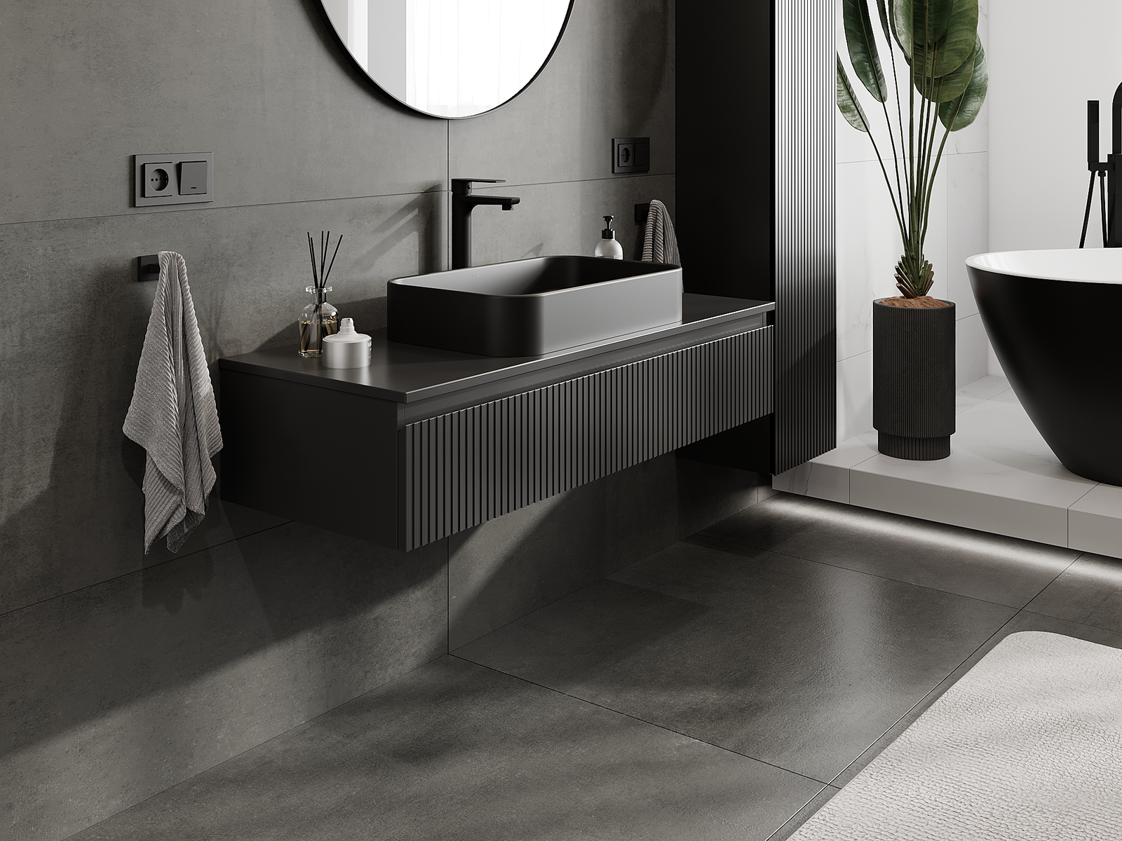 Mexen Rivel vonios spintelė po kriaukle 120 cm, 1 stalčius, rifliuota, juoda matinė - 91A20-12023-1-BF71