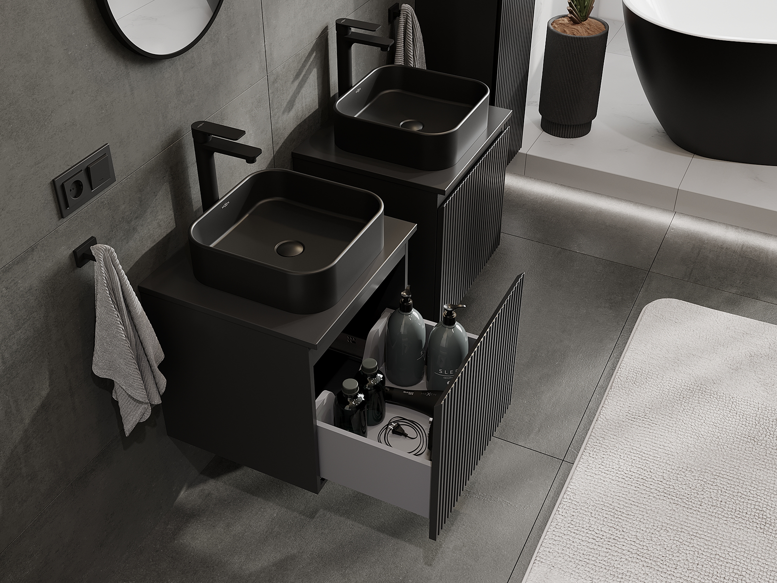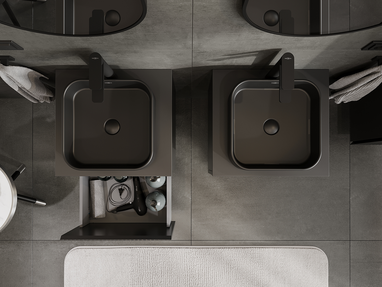 Mexen Rivel vonios kambario spintelė po praustuvu 50 cm, 1 stalčius, briaunuota, juoda matinė - 91A20-05047-1-BF71