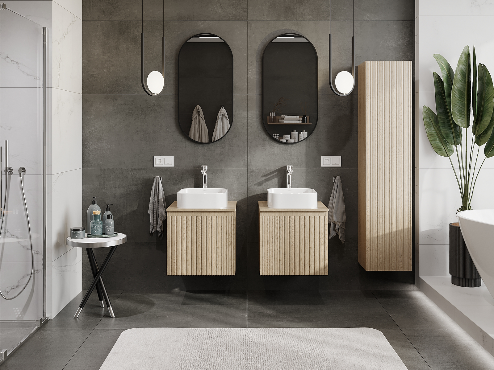 Mūsų moduliniai vonios baldai gali būti derinami tarpusavyje įvairiomis spalvų konfigūracijomis, leidžiant visiškai pritaikyti pagal asmeninius poreikius. Galima pasirinkti tiek atskirų elementų išvaizdą, tiek funkcijas, kas leidžia baldus pritaikyti pagal savo stiliaus ir naudojimo preferencijas.