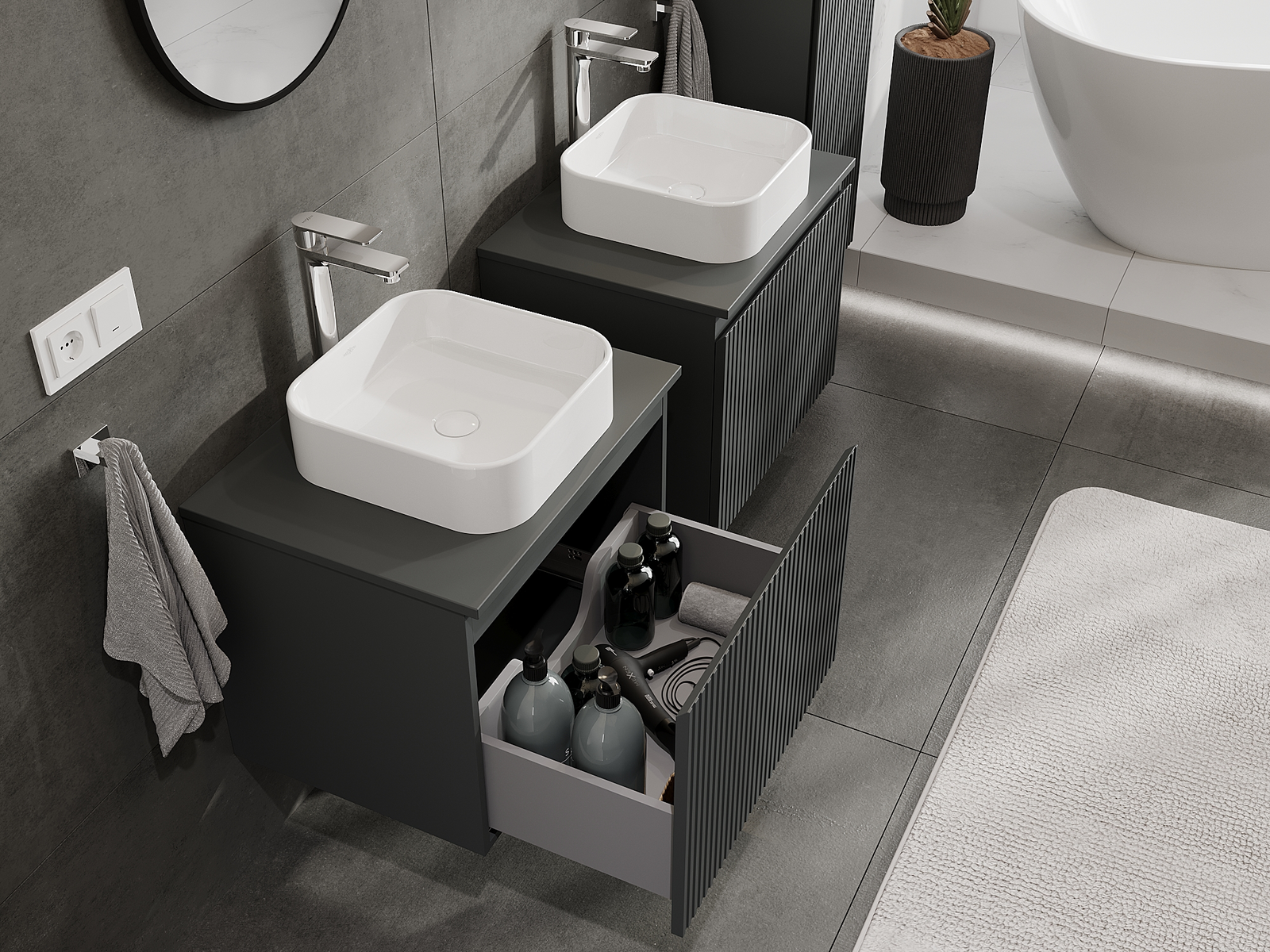 Mexen Rivel vonios spintelė po kriaukle 60 cm, 1 stalčius, gofruotas, grafitas matinis - 91A20-06047-1-BF66
