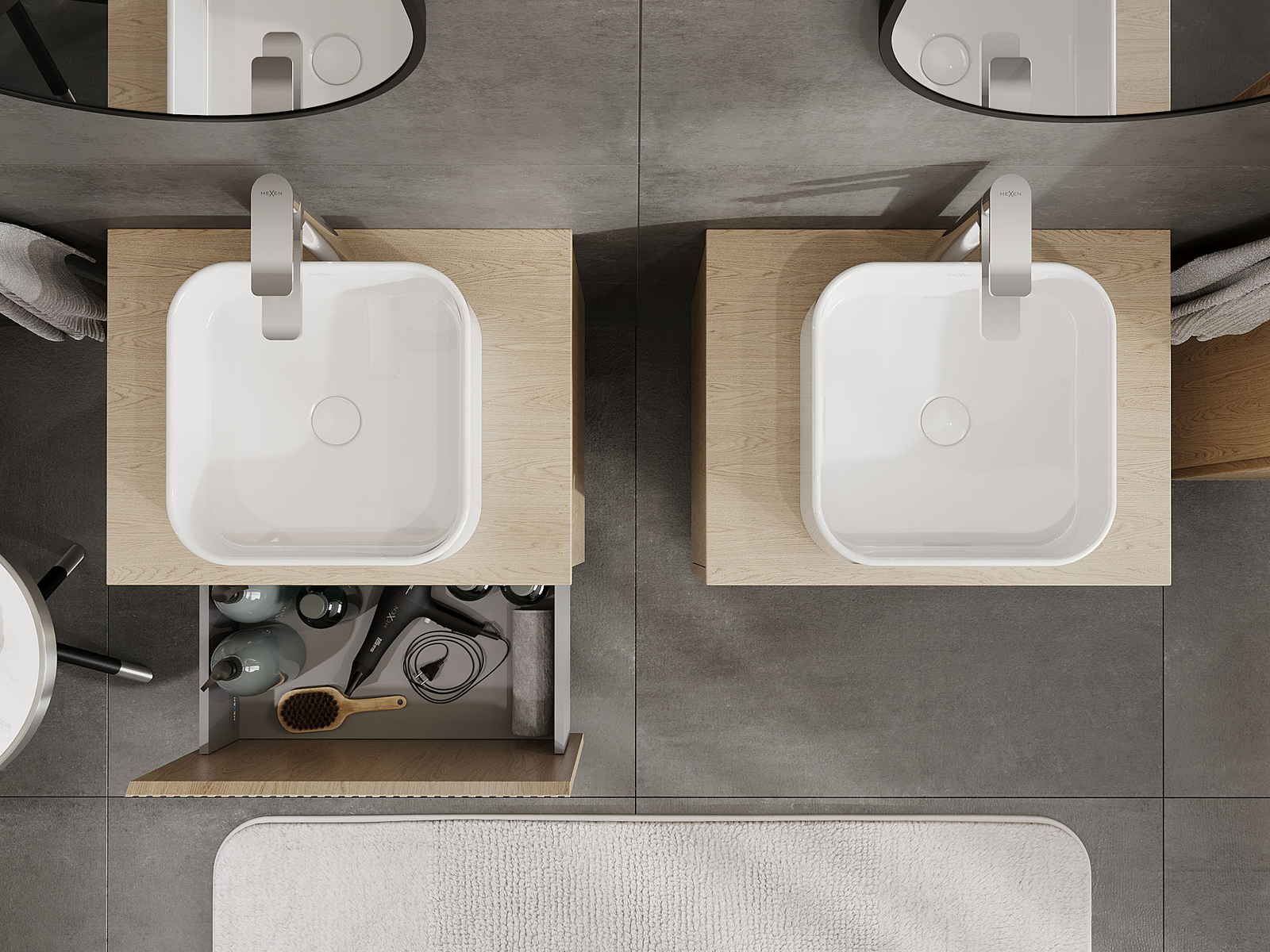 Mūsų moduliniai vonios baldai gali būti derinami tarpusavyje įvairiomis spalvų konfigūracijomis, leidžiant visiškai pritaikyti pagal asmeninius poreikius. Galima pasirinkti tiek atskirų elementų išvaizdą, tiek funkcijas, kas leidžia baldus pritaikyti pagal savo stiliaus ir naudojimo preferencijas.