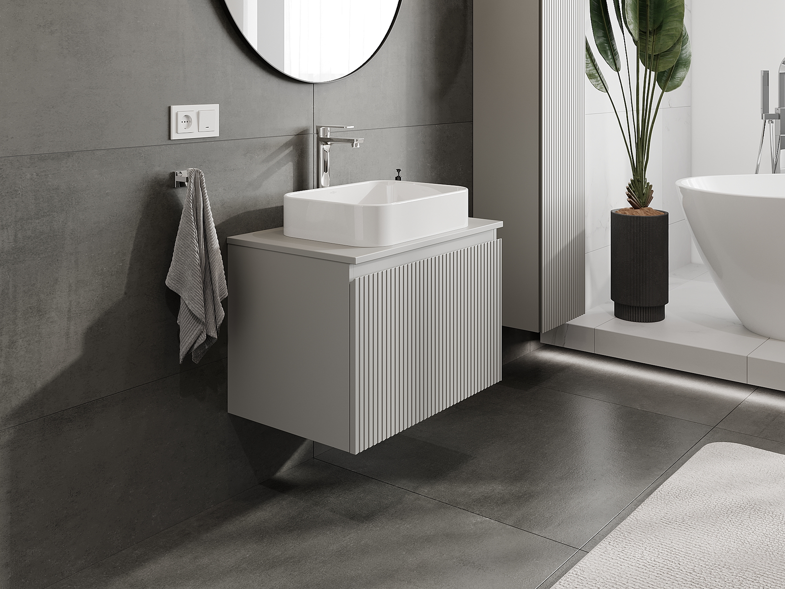 Mexen Rivel vonios kambario spintelė po praustuvu 70 cm, 1 stalčius, grioveliuota, pilka matinė - 91A20-07047-1-BF62