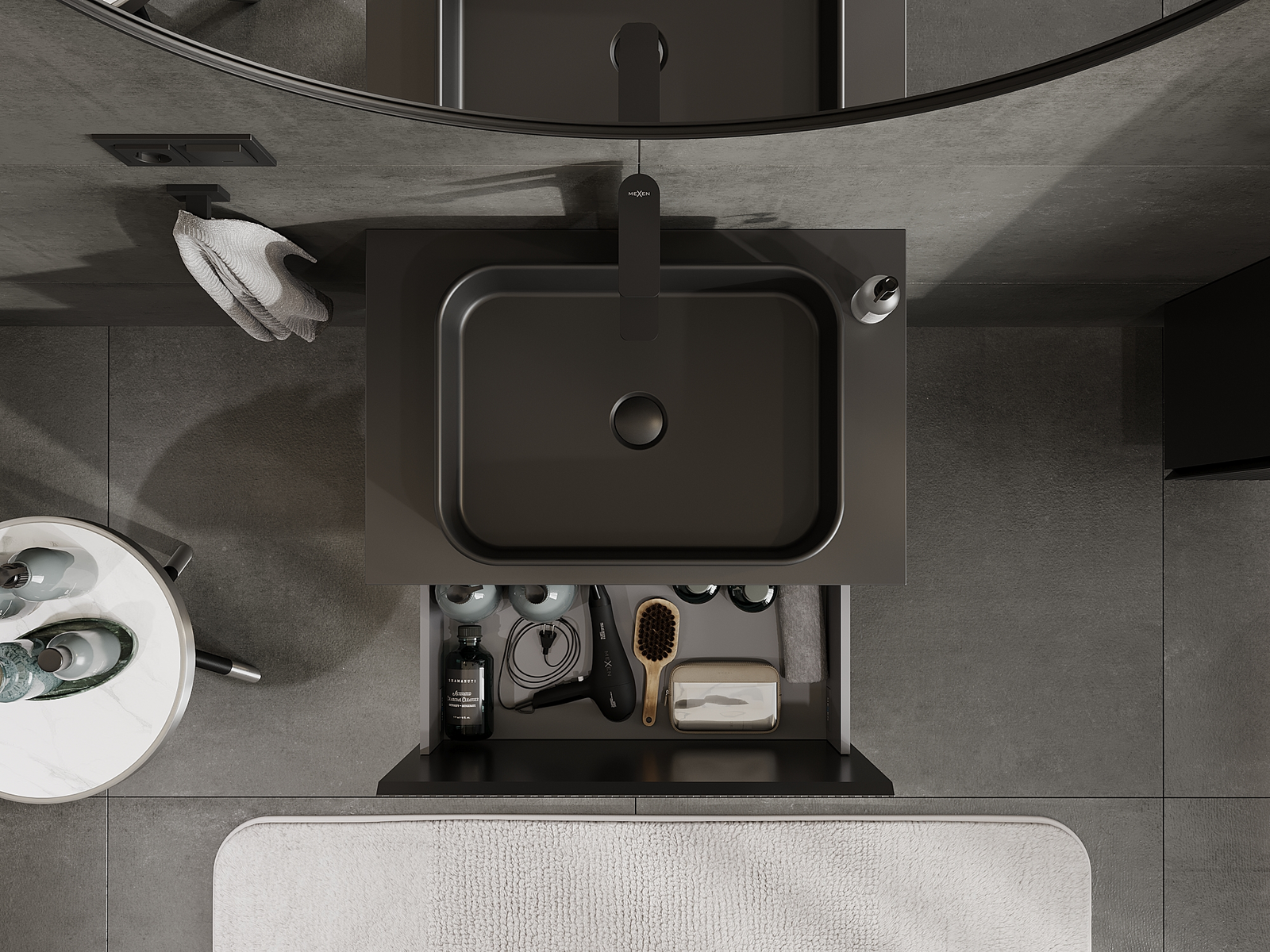 Mūsų moduliniai vonios baldai gali būti derinami tarpusavyje įvairiomis spalvų konfigūracijomis, leidžiant visiškai pritaikyti pagal asmeninius poreikius. Galima pasirinkti tiek atskirų elementų išvaizdą, tiek funkcijas, kas leidžia baldus pritaikyti pagal savo stiliaus ir naudojimo preferencijas.