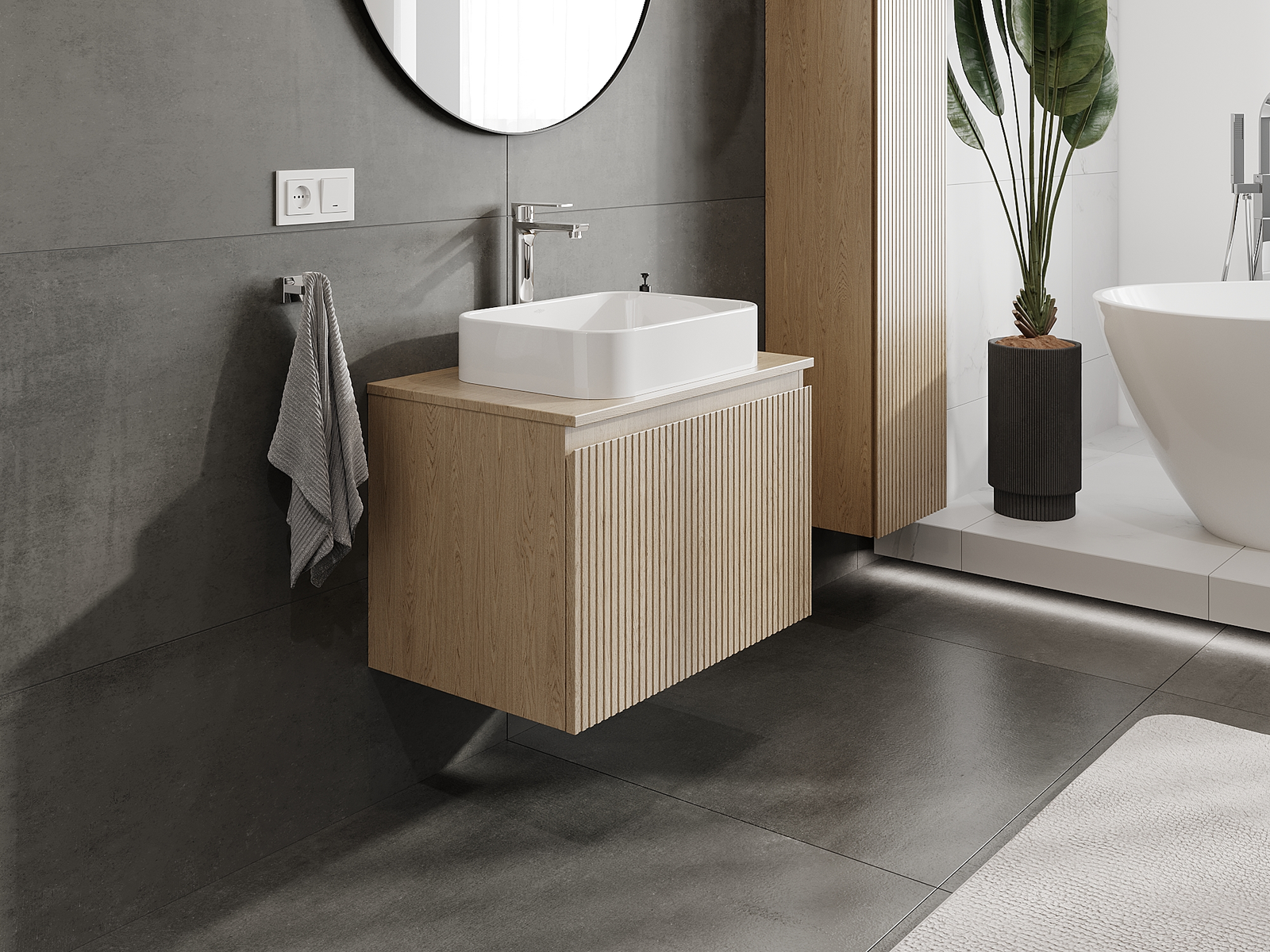 Mexen Rivel vonios kambario spintelė po praustuvu 70 cm, 1 stalčius, banguotas, ąžuolas - 91A20-07047-1-BF81