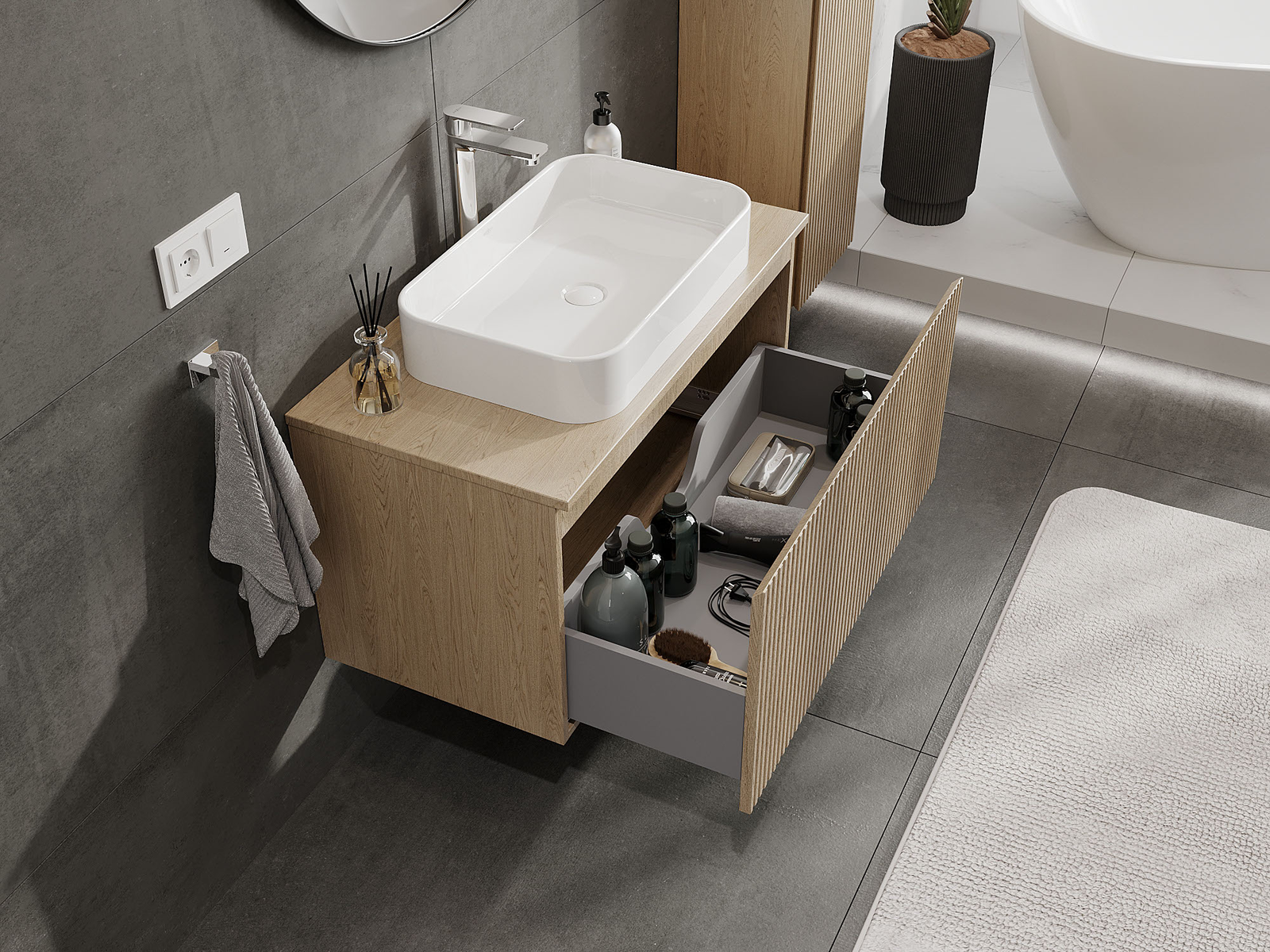 Mexen Rivel vonios spintelė po praustuvu 90 cm, 1 stalčius, rifliuota, ąžuolas - 91A20-09047-1-BF81