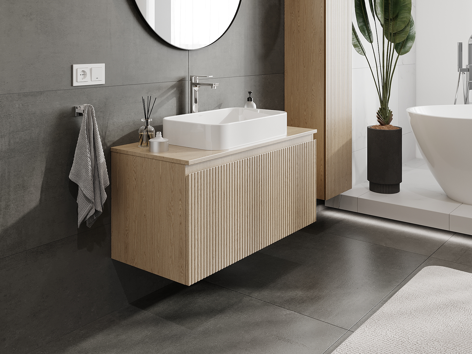 Mexen Rivel vonios kambario spintelė po kriaukle 100 cm, 1 stalčius, rifliuota, ąžuolas - 91A20-10047-1-BF81