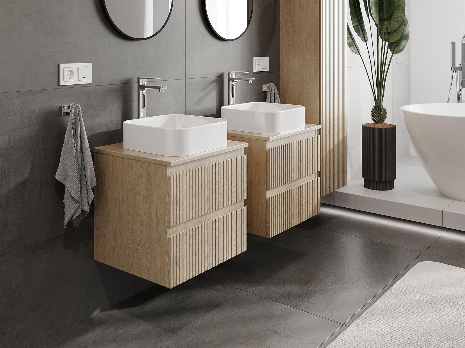 Mūsų moduliniai vonios baldai gali būti derinami tarpusavyje įvairiomis spalvų konfigūracijomis, leidžiant visiškai pritaikyti pagal asmeninius poreikius. Galima pasirinkti tiek atskirų elementų išvaizdą, tiek funkcijas, kas leidžia baldus pritaikyti pagal savo stiliaus ir naudojimo preferencijas.