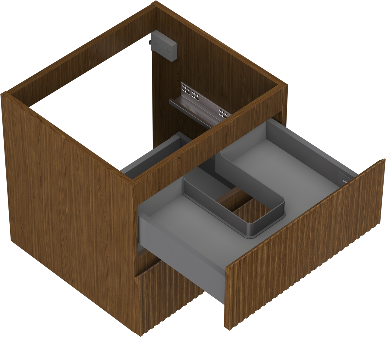 Iškirpimas stalčiuje yra suprojektuotas taip, kad tilptų sifonas, kuris yra būtinas kriauklės įrenginiuose. Dėl to baldas gali būti pilnai funkcionaliai sumontuotas, nereikalaujant atsisakyti vietos stalčiuje dėl įrenginio.