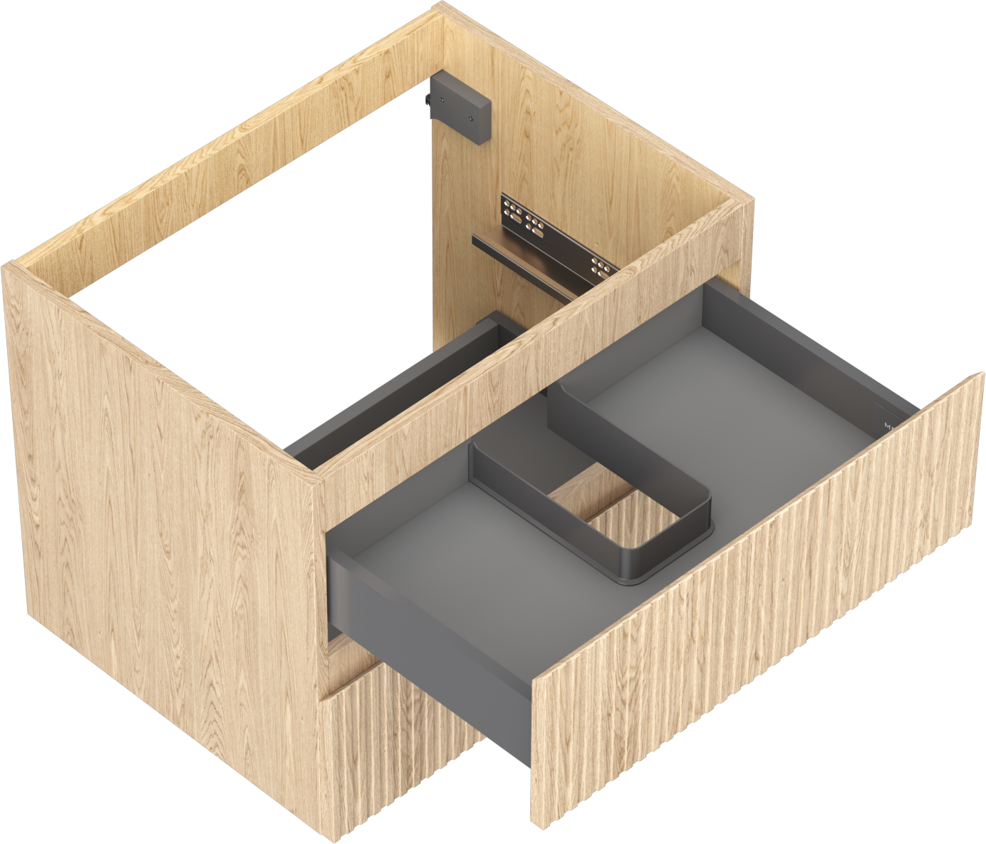Iškirpimas stalčiuje yra suprojektuotas taip, kad tilptų sifonas, kuris yra būtinas kriauklės įrenginiuose. Dėl to baldas gali būti pilnai funkcionaliai sumontuotas, nereikalaujant atsisakyti vietos stalčiuje dėl įrenginio.