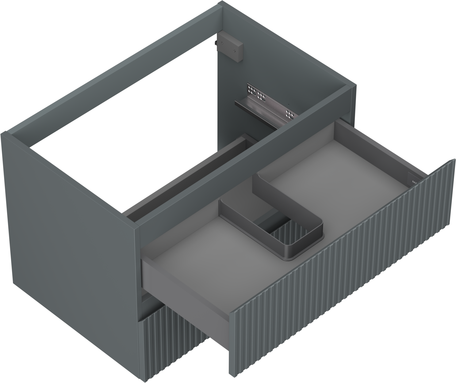 Iškirpimas stalčiuje yra suprojektuotas taip, kad tilptų sifonas, kuris yra būtinas kriauklės įrenginiuose. Dėl to baldas gali būti pilnai funkcionaliai sumontuotas, nereikalaujant atsisakyti vietos stalčiuje dėl įrenginio.