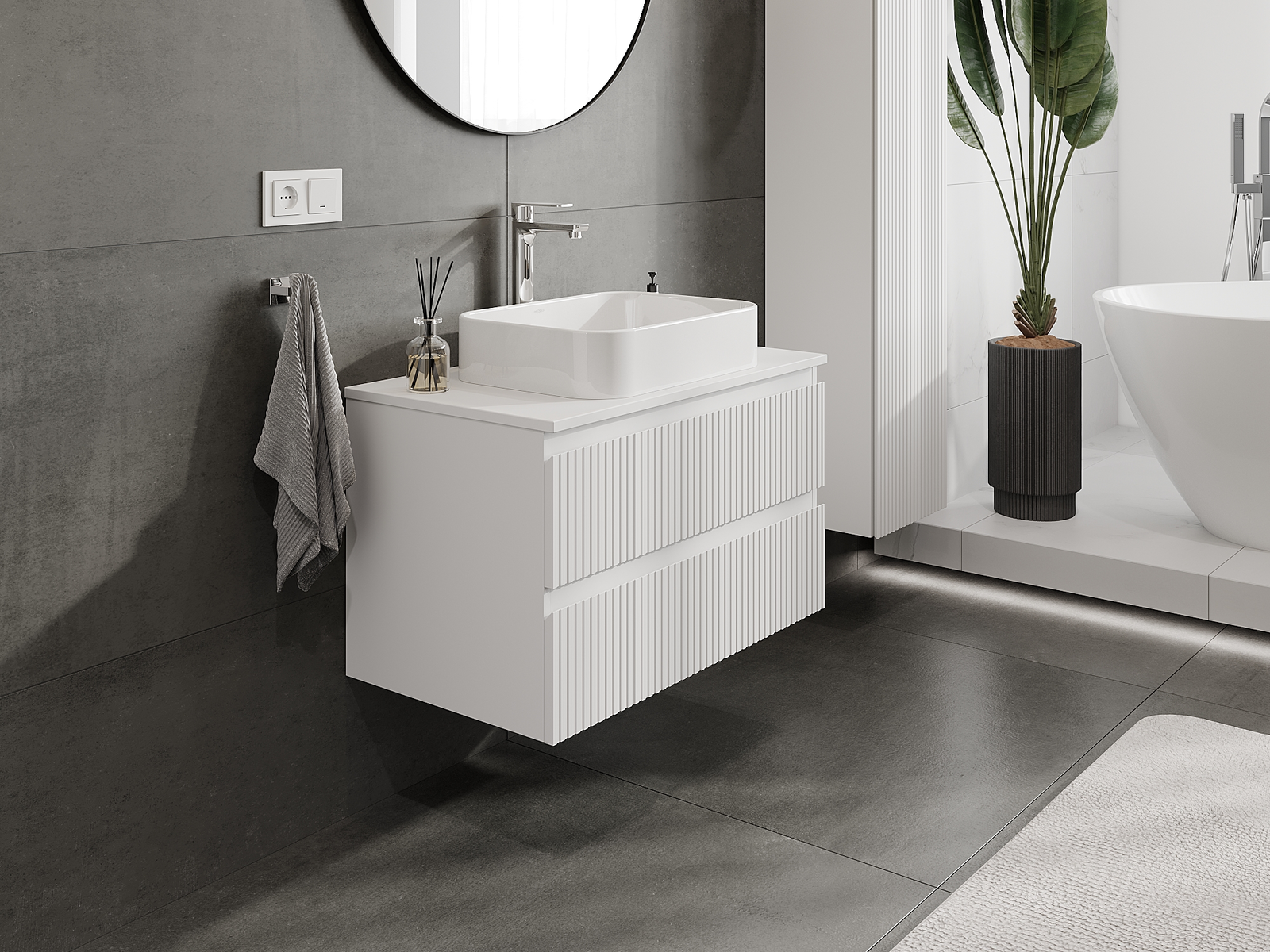 Mūsų moduliniai vonios baldai gali būti derinami tarpusavyje įvairiomis spalvų konfigūracijomis, leidžiant visiškai pritaikyti pagal asmeninius poreikius. Galima pasirinkti tiek atskirų elementų išvaizdą, tiek funkcijas, kas leidžia baldus pritaikyti pagal savo stiliaus ir naudojimo preferencijas.