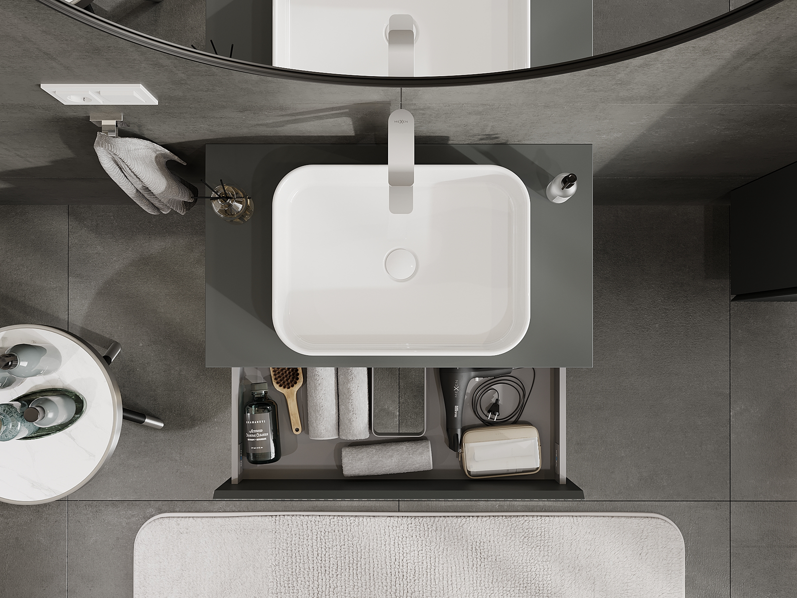 Mūsų moduliniai vonios baldai gali būti derinami tarpusavyje įvairiomis spalvų konfigūracijomis, leidžiant visiškai pritaikyti pagal asmeninius poreikius. Galima pasirinkti tiek atskirų elementų išvaizdą, tiek funkcijas, kas leidžia baldus pritaikyti pagal savo stiliaus ir naudojimo preferencijas.