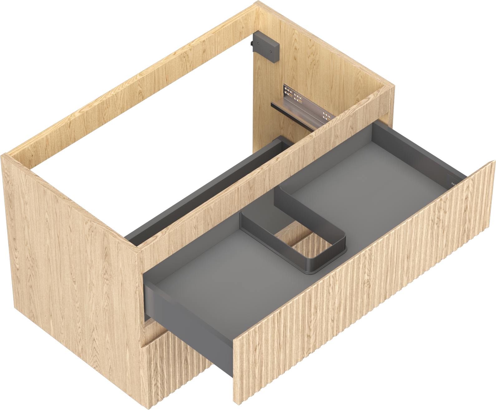 Iškirpimas stalčiuje yra suprojektuotas taip, kad tilptų sifonas, kuris yra būtinas kriauklės įrenginiuose. Dėl to baldas gali būti pilnai funkcionaliai sumontuotas, nereikalaujant atsisakyti vietos stalčiuje dėl įrenginio.