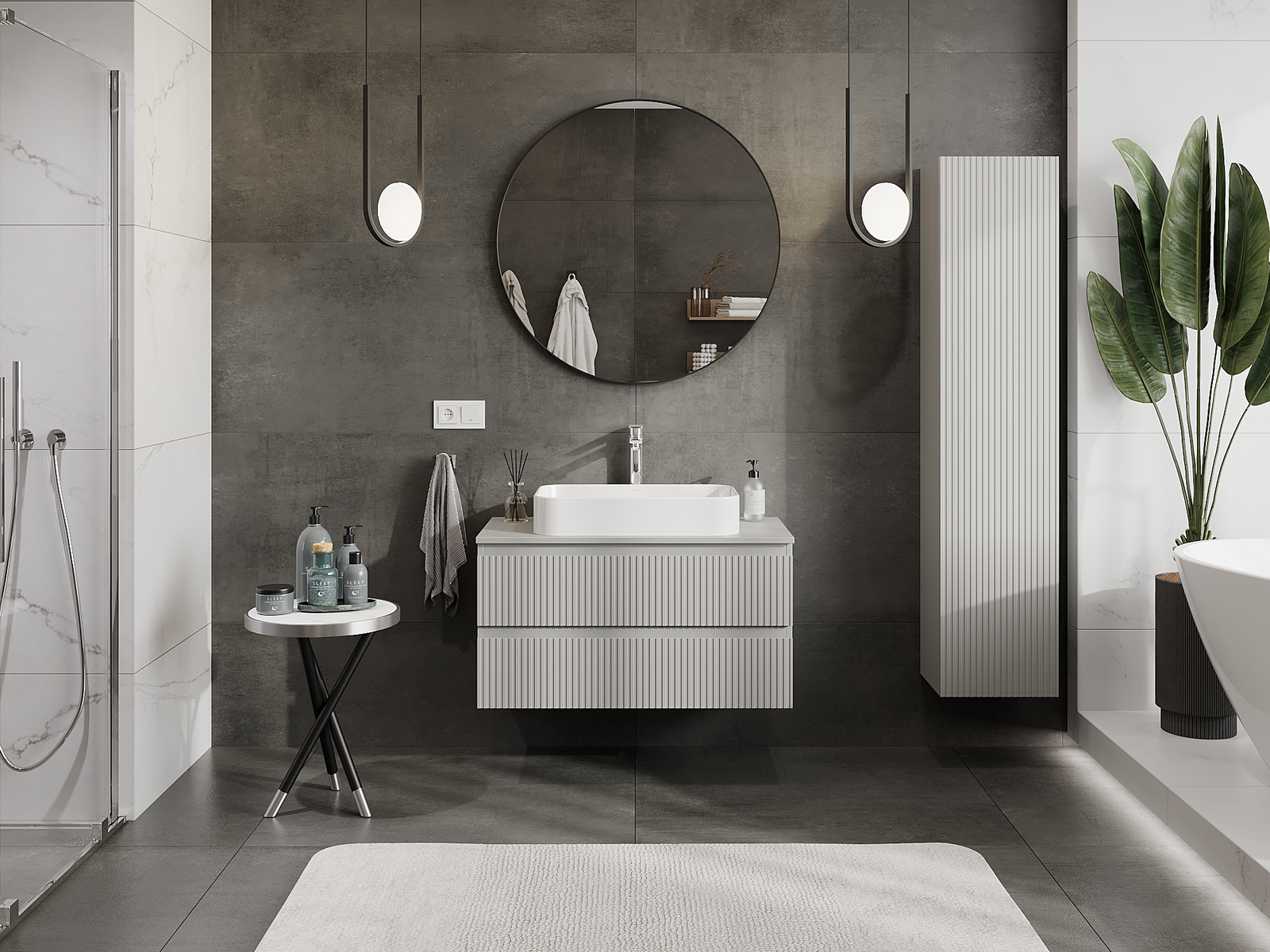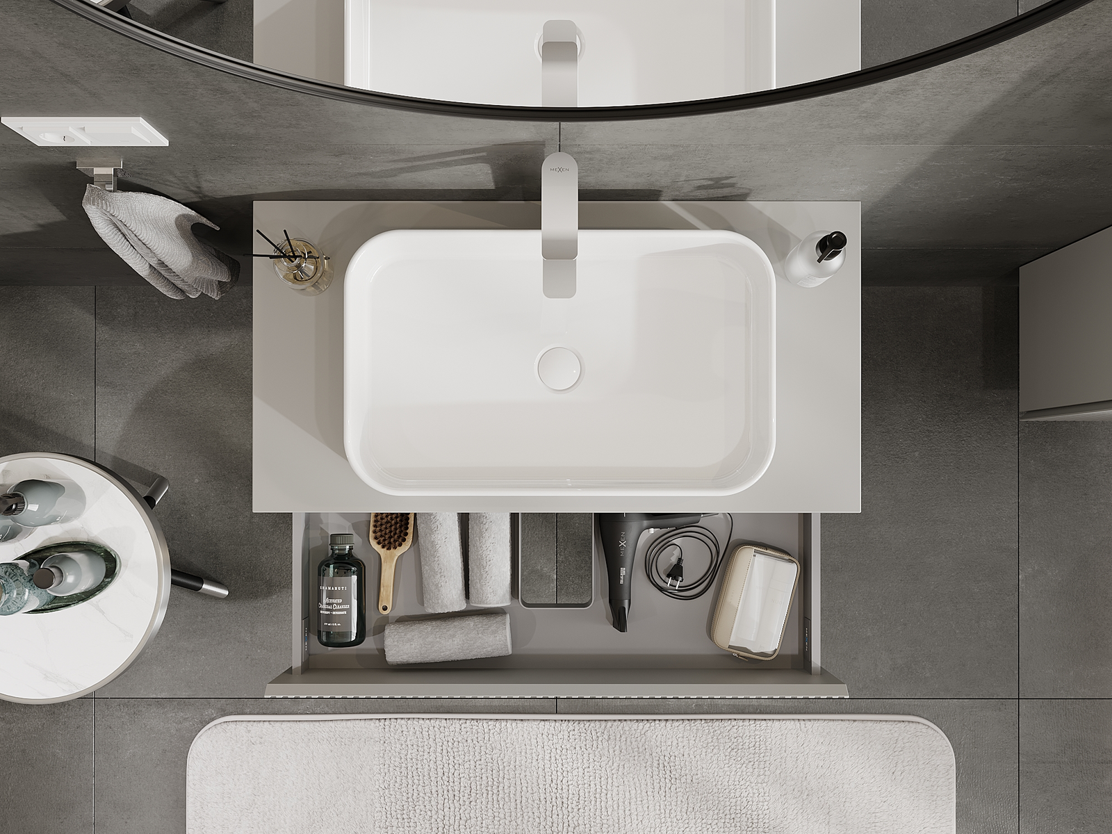 Mūsų moduliniai vonios baldai gali būti derinami tarpusavyje įvairiomis spalvų konfigūracijomis, leidžiant visiškai pritaikyti pagal asmeninius poreikius. Galima pasirinkti tiek atskirų elementų išvaizdą, tiek funkcijas, kas leidžia baldus pritaikyti pagal savo stiliaus ir naudojimo preferencijas.