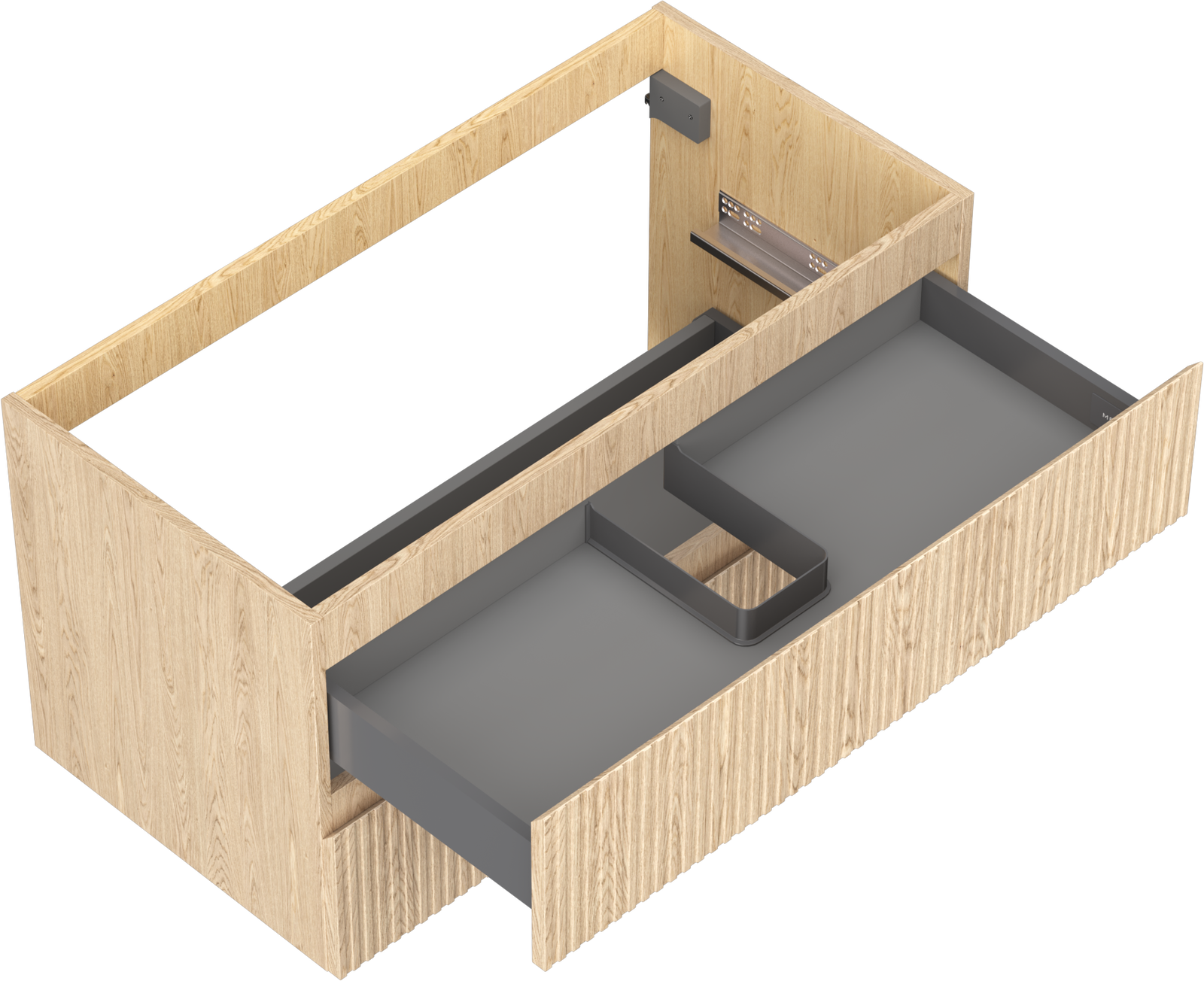 Iškirpimas stalčiuje yra suprojektuotas taip, kad tilptų sifonas, kuris yra būtinas kriauklės įrenginiuose. Dėl to baldas gali būti pilnai funkcionaliai sumontuotas, nereikalaujant atsisakyti vietos stalčiuje dėl įrenginio.