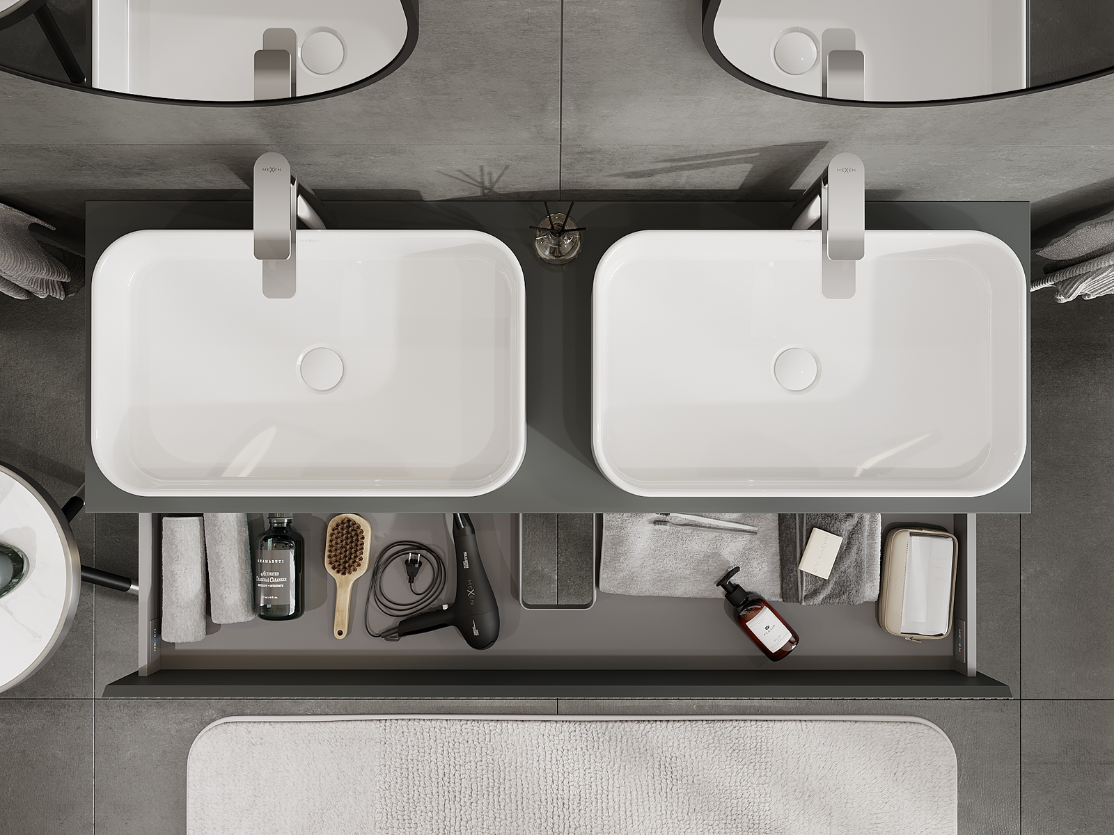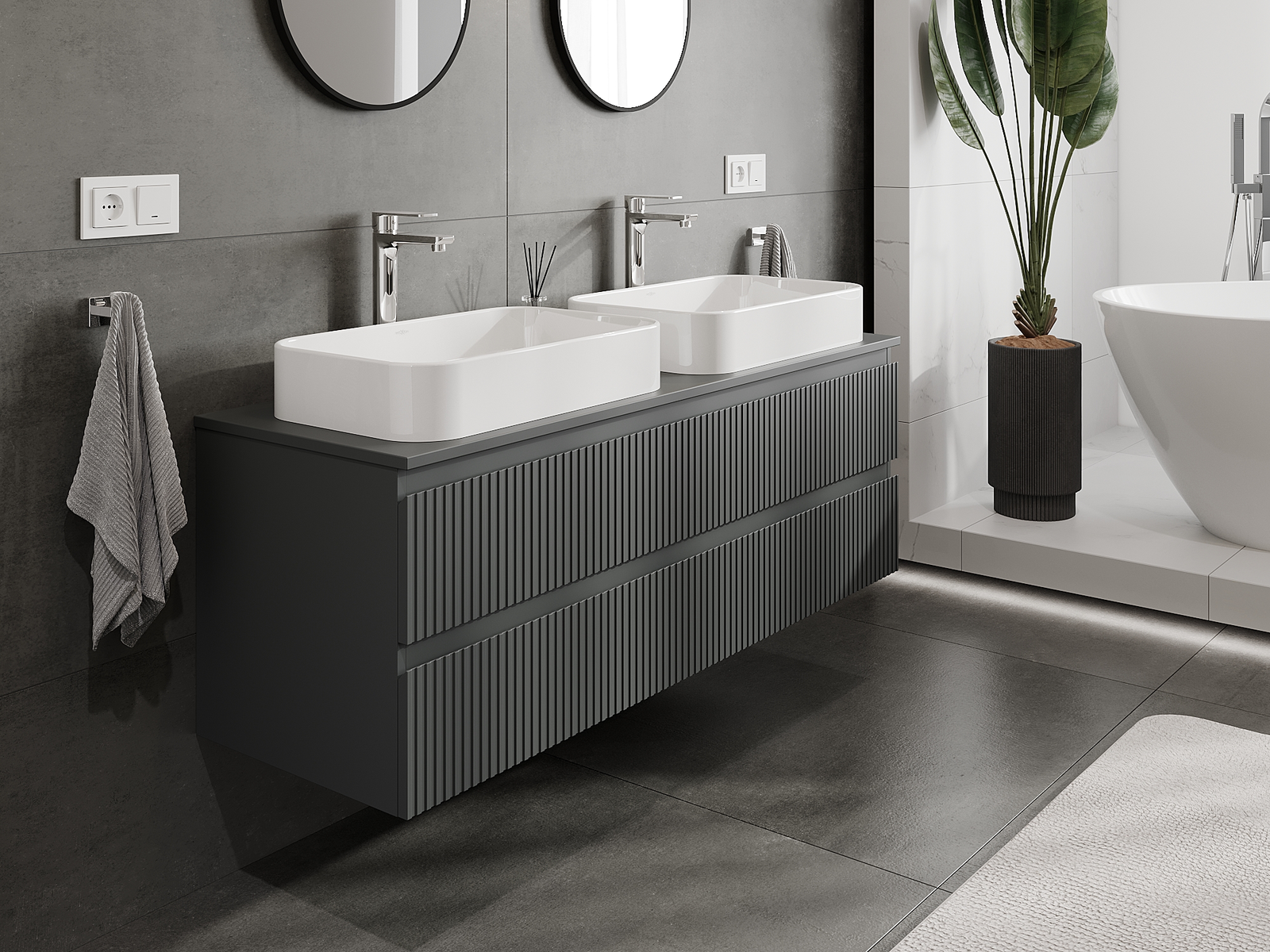 Mūsų moduliniai vonios baldai gali būti derinami tarpusavyje įvairiomis spalvų konfigūracijomis, leidžiant visiškai pritaikyti pagal asmeninius poreikius. Galima pasirinkti tiek atskirų elementų išvaizdą, tiek funkcijas, kas leidžia baldus pritaikyti pagal savo stiliaus ir naudojimo preferencijas.