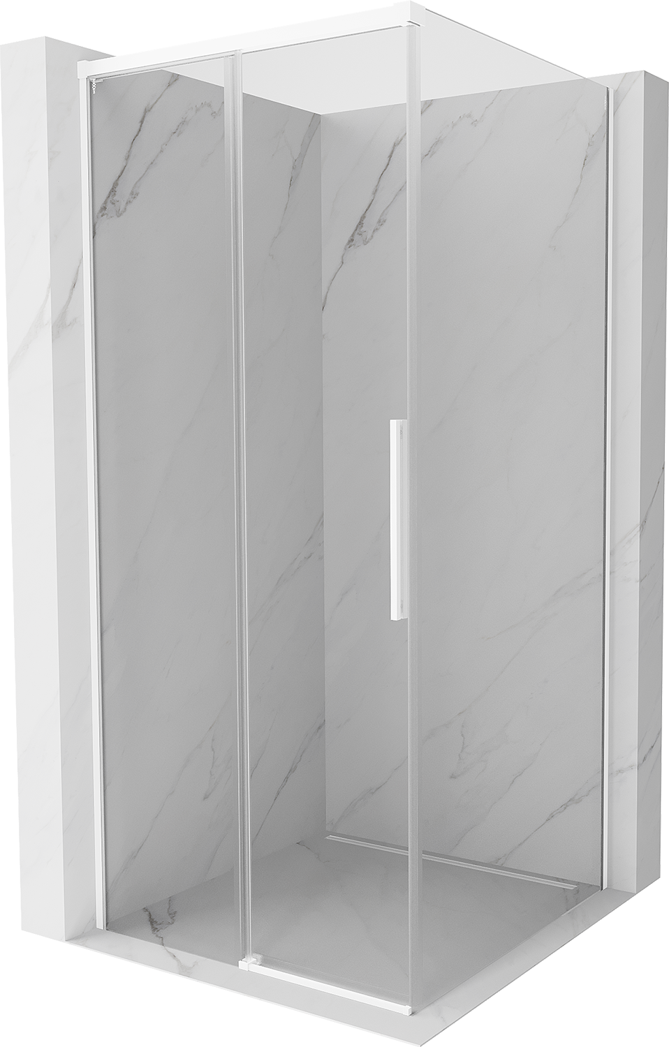 Mexen Rox stumetrinis per kilnojamąją siena dušo kabina, 100 x 100 cm, skaidri, balta - 8C2-100-100-20-00