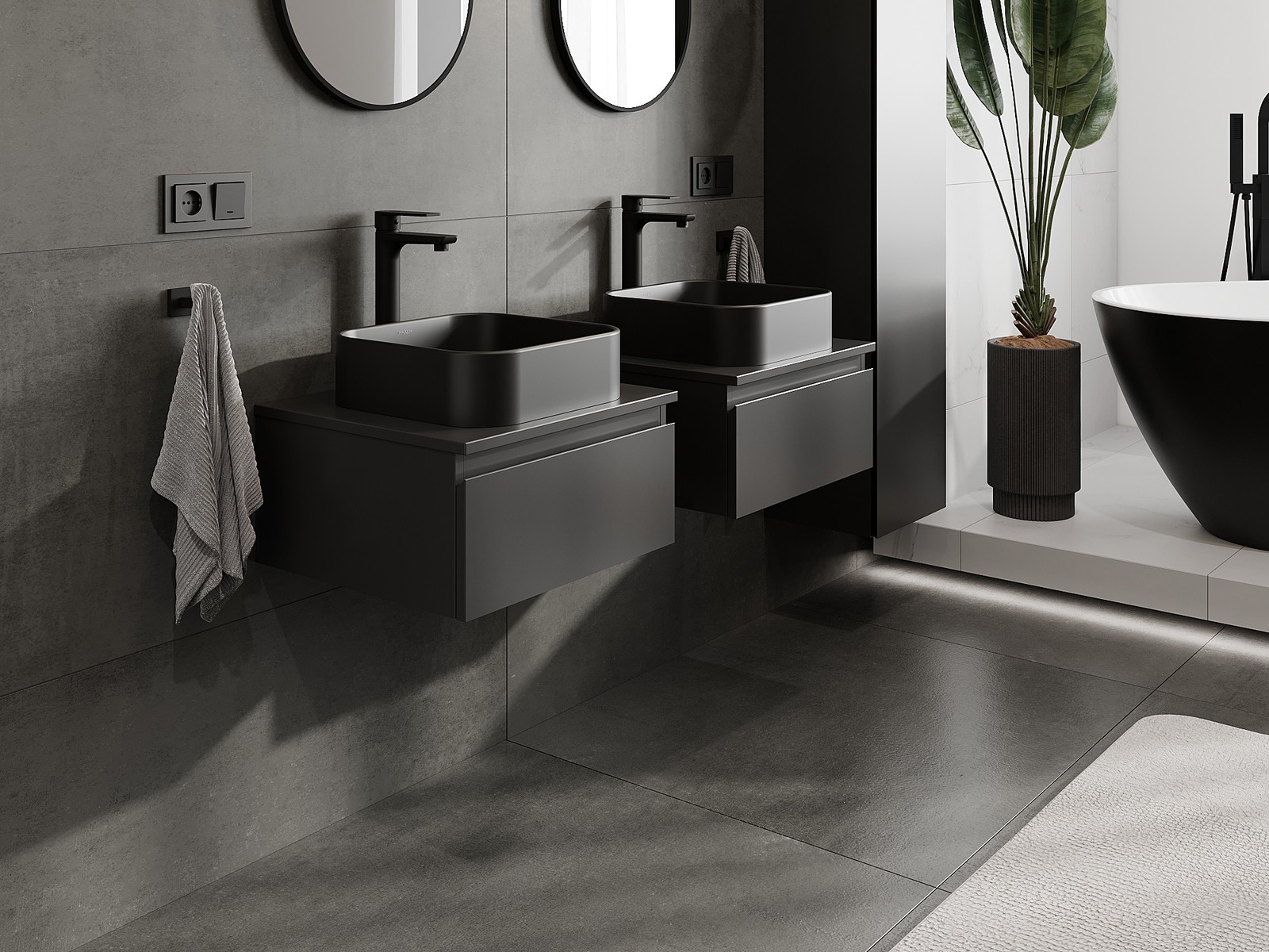 Mūsų moduliniai vonios baldai gali būti derinami tarpusavyje įvairiomis spalvų konfigūracijomis, leidžiant visiškai pritaikyti pagal asmeninius poreikius. Galima pasirinkti tiek atskirų elementų išvaizdą, tiek funkcijas, kas leidžia baldus pritaikyti pagal savo stiliaus ir naudojimo preferencijas.