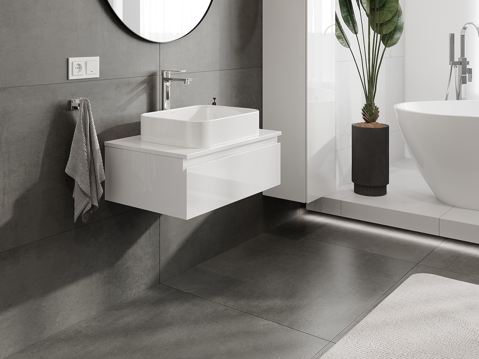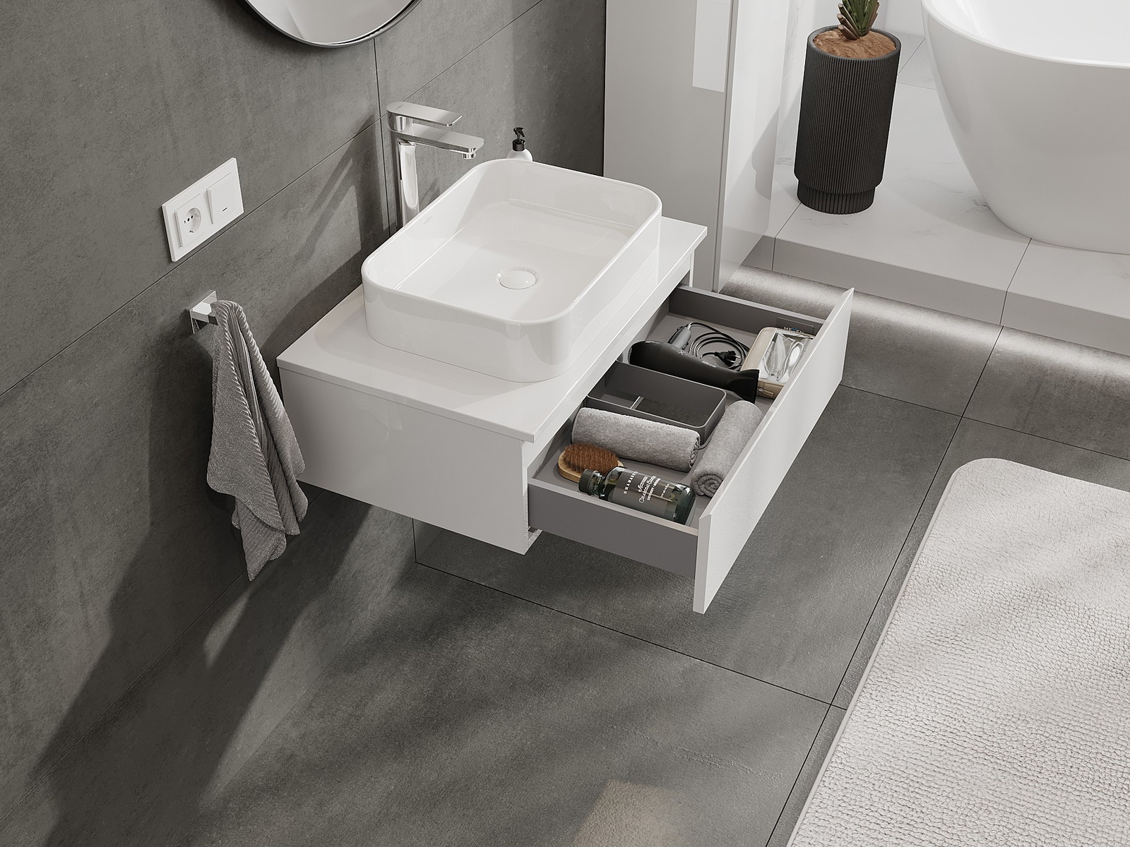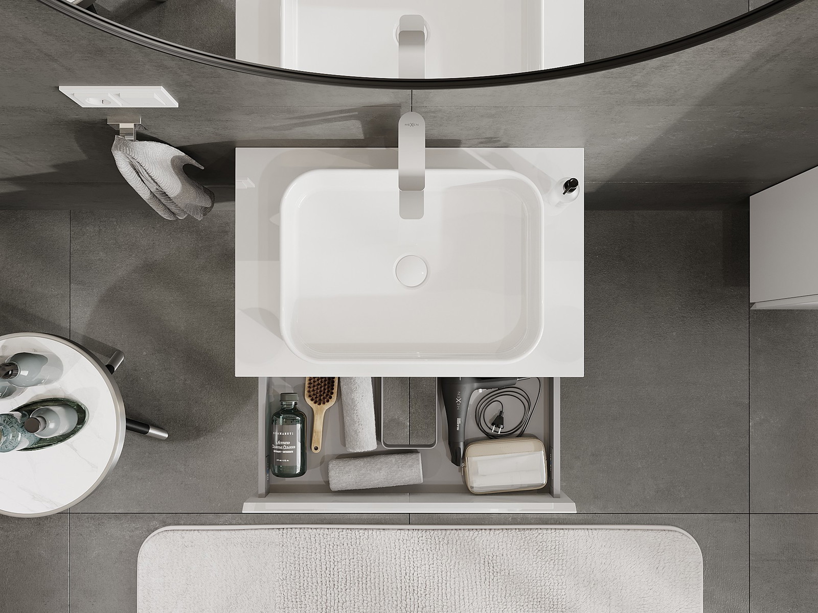 Mūsų moduliniai vonios baldai gali būti derinami tarpusavyje įvairiomis spalvų konfigūracijomis, leidžiant visiškai pritaikyti pagal asmeninius poreikius. Galima pasirinkti tiek atskirų elementų išvaizdą, tiek funkcijas, kas leidžia baldus pritaikyti pagal savo stiliaus ir naudojimo preferencijas.
