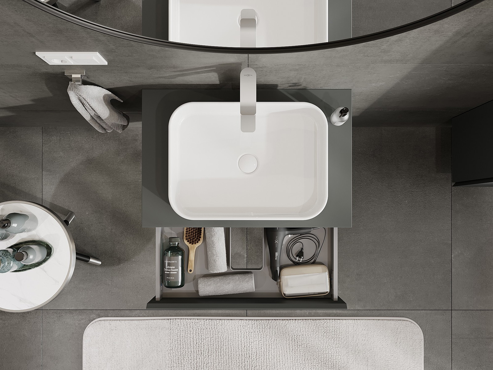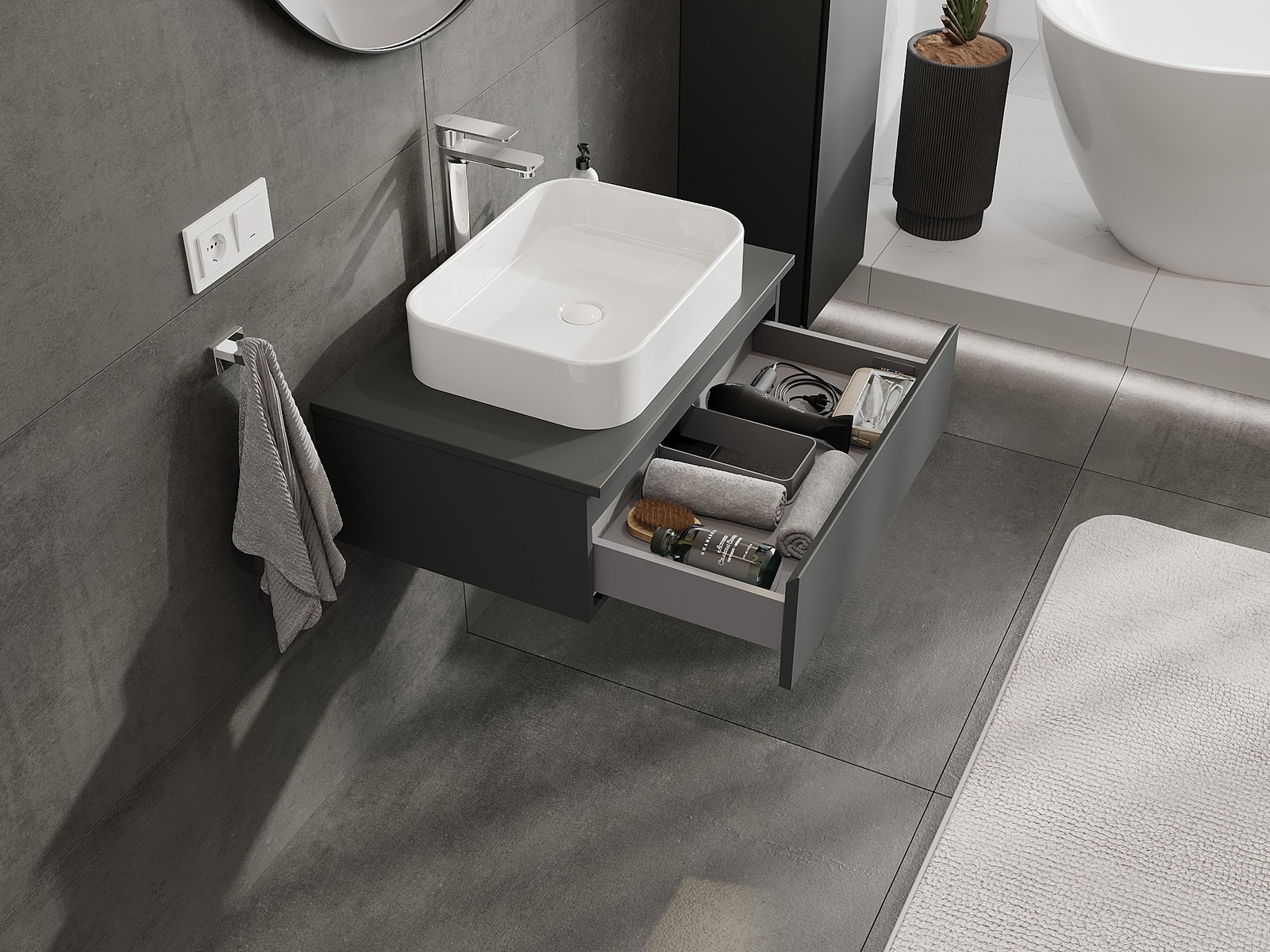 Mūsų moduliniai vonios baldai gali būti derinami tarpusavyje įvairiomis spalvų konfigūracijomis, leidžiant visiškai pritaikyti pagal asmeninius poreikius. Galima pasirinkti tiek atskirų elementų išvaizdą, tiek funkcijas, kas leidžia baldus pritaikyti pagal savo stiliaus ir naudojimo preferencijas.