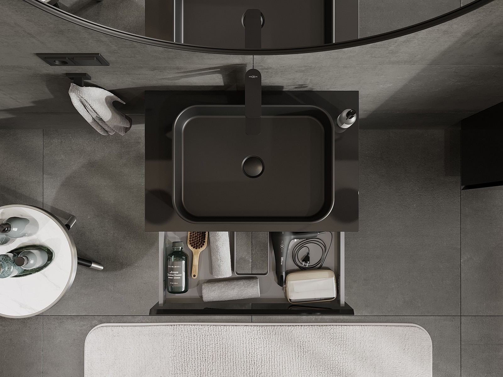 Mūsų moduliniai vonios baldai gali būti derinami tarpusavyje įvairiomis spalvų konfigūracijomis, leidžiant visiškai pritaikyti pagal asmeninius poreikius. Galima pasirinkti tiek atskirų elementų išvaizdą, tiek funkcijas, kas leidžia baldus pritaikyti pagal savo stiliaus ir naudojimo preferencijas.