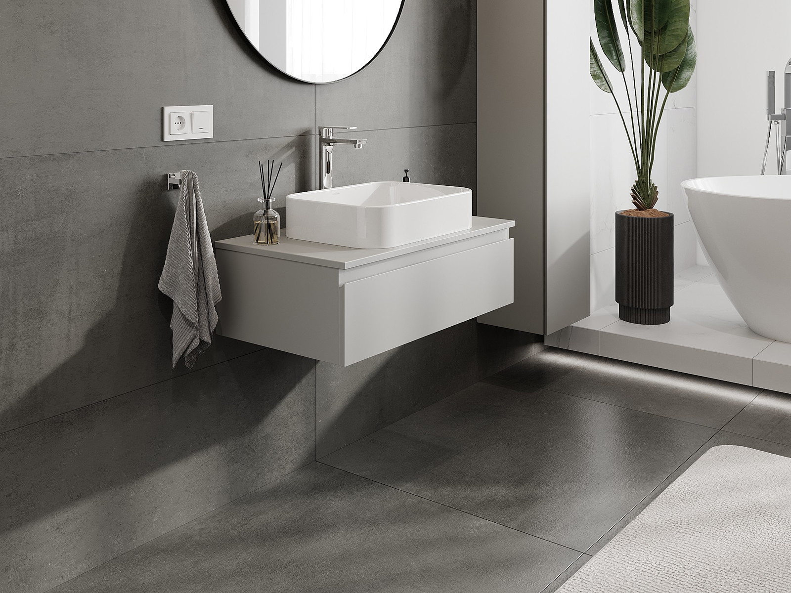 Mūsų moduliniai vonios baldai gali būti derinami tarpusavyje įvairiomis spalvų konfigūracijomis, leidžiant visiškai pritaikyti pagal asmeninius poreikius. Galima pasirinkti tiek atskirų elementų išvaizdą, tiek funkcijas, kas leidžia baldus pritaikyti pagal savo stiliaus ir naudojimo preferencijas.