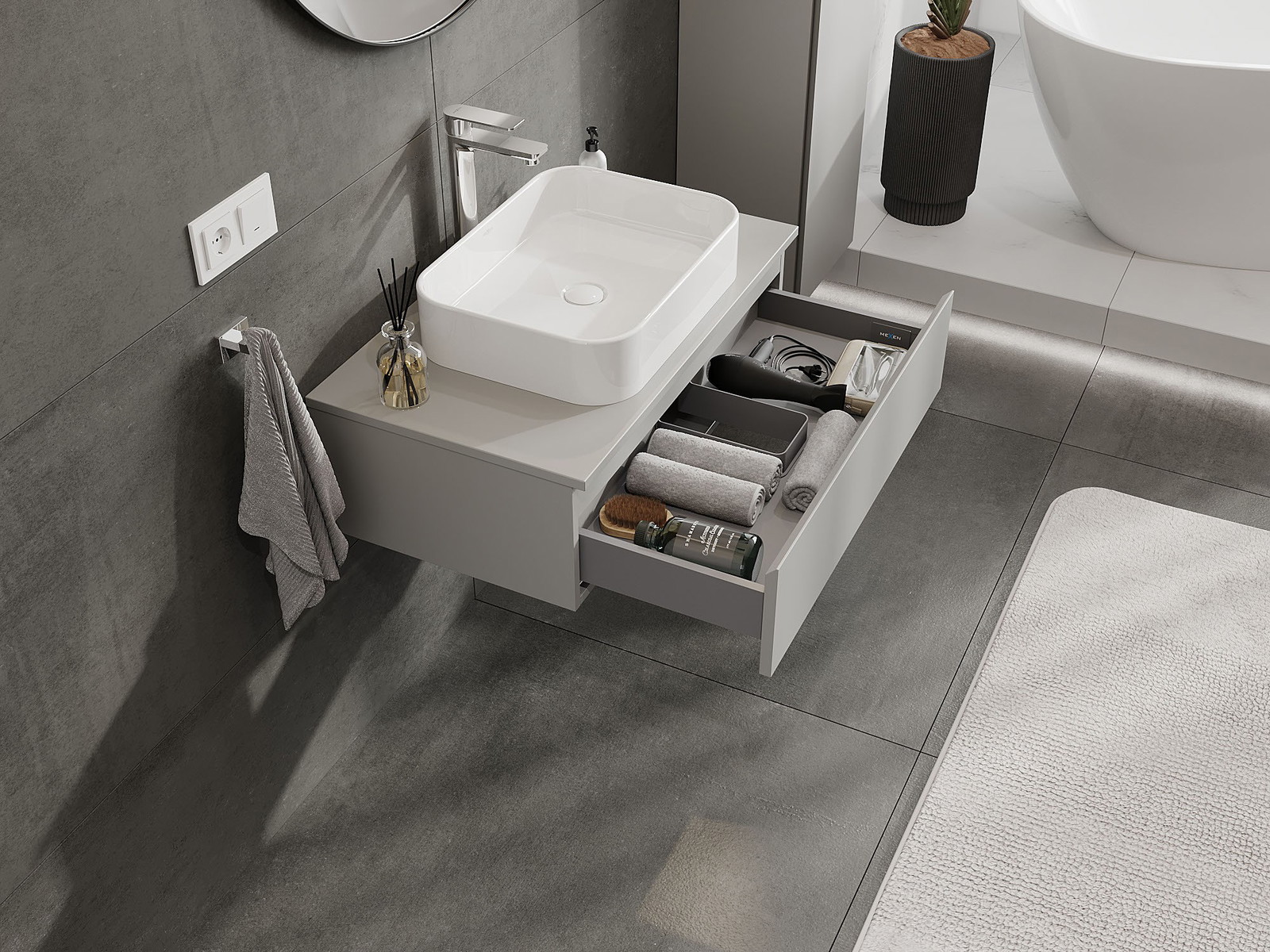 Mexen Orio vonios spintelė po praustuvu 80 cm su stalviršiu, 1 stalčius, pilka matinė - 91A10-08023-1-BFC62