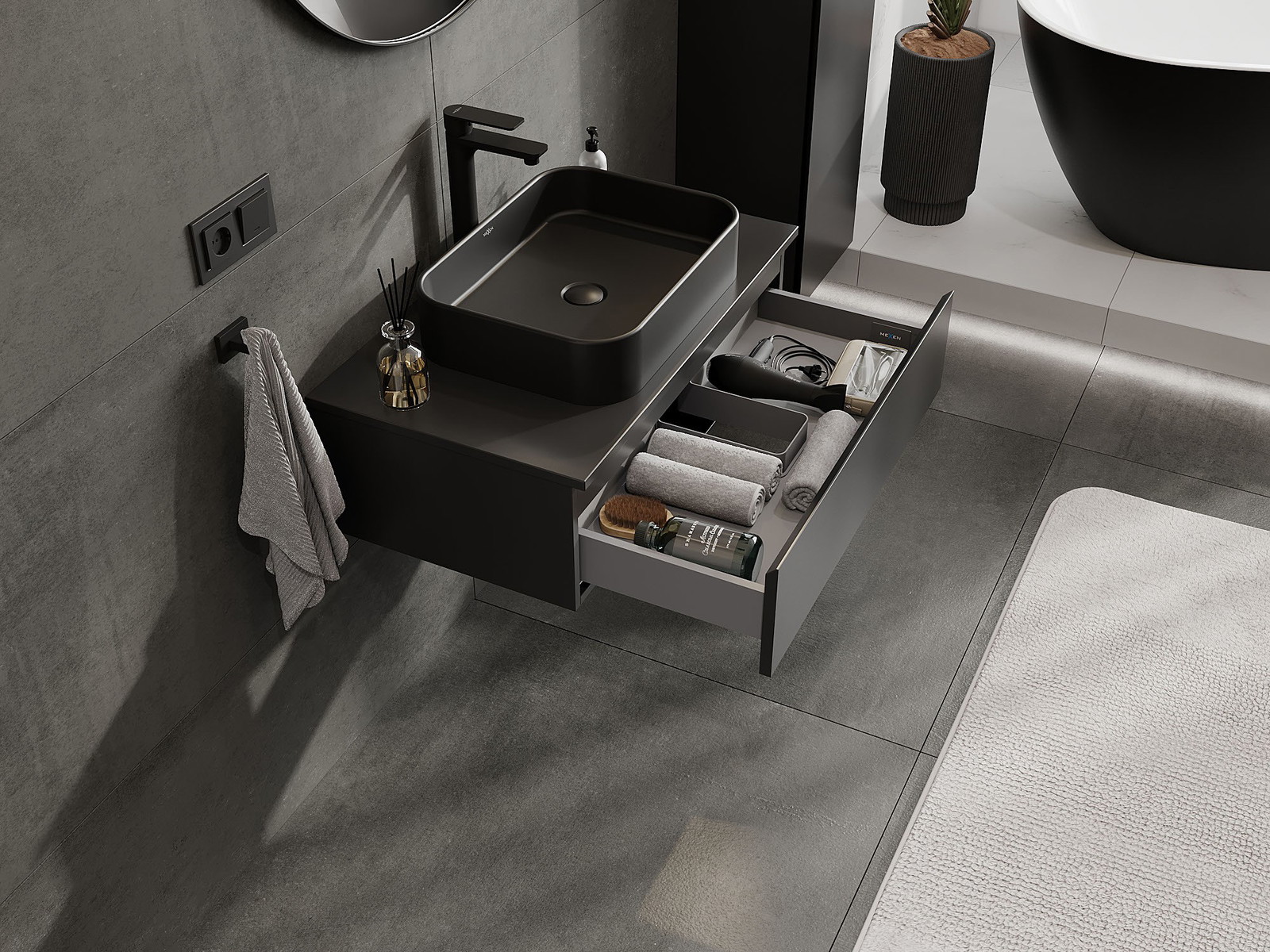 Mūsų moduliniai vonios baldai gali būti derinami tarpusavyje įvairiomis spalvų konfigūracijomis, leidžiant visiškai pritaikyti pagal asmeninius poreikius. Galima pasirinkti tiek atskirų elementų išvaizdą, tiek funkcijas, kas leidžia baldus pritaikyti pagal savo stiliaus ir naudojimo preferencijas.