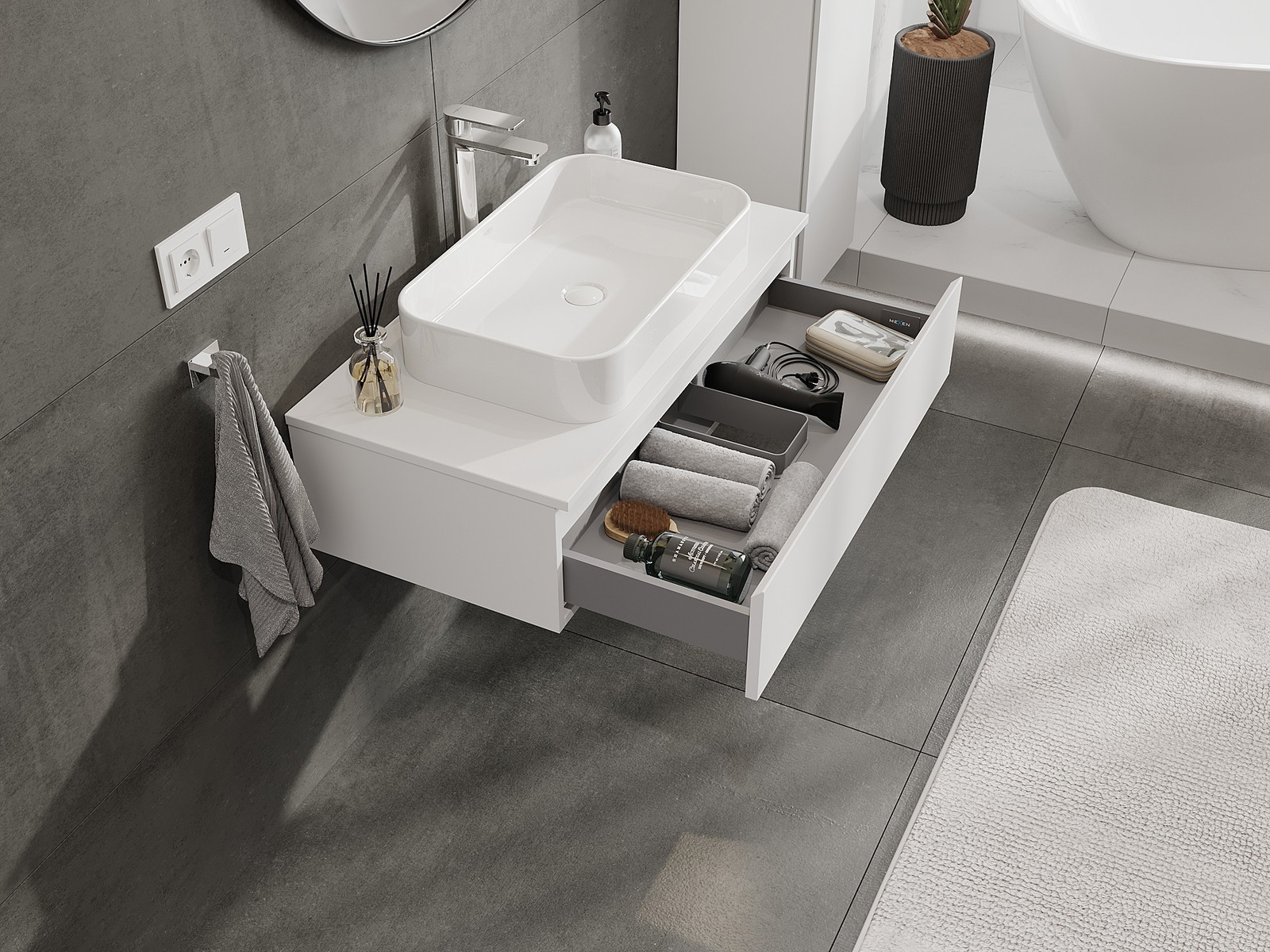 Dėl tvirtų medžiagų, preciziško atlikimo ir šiuolaikinių technologinių sprendimų, produktas užtikrina patogų naudojimą, atsparumą drėgmei ir temperatūros pokyčiams, taip pat elegantišką išvaizdą, kuri tinka įvairiems vonios kambario stiliams.