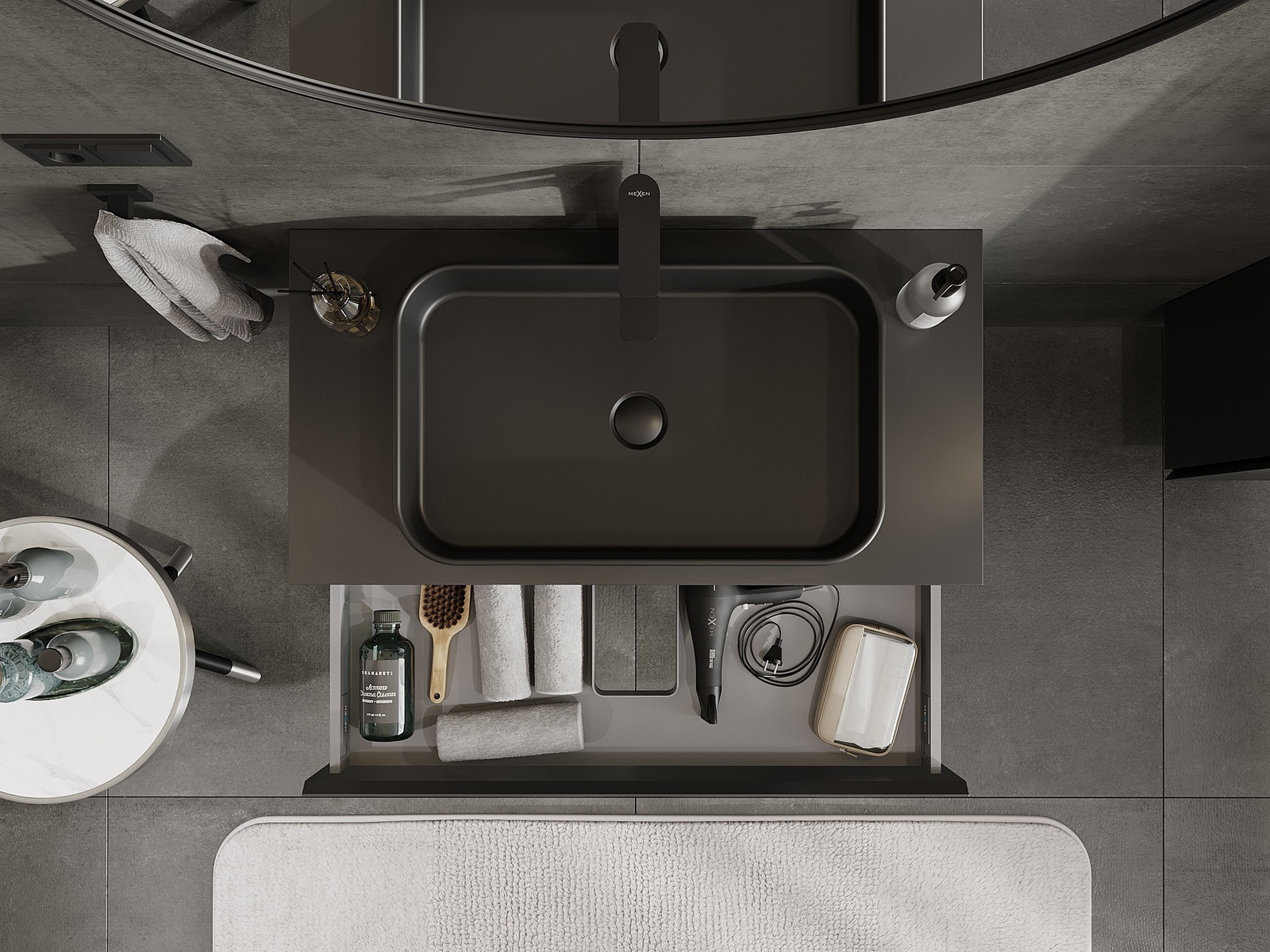 Mūsų moduliniai vonios baldai gali būti derinami tarpusavyje įvairiomis spalvų konfigūracijomis, leidžiant visiškai pritaikyti pagal asmeninius poreikius. Galima pasirinkti tiek atskirų elementų išvaizdą, tiek funkcijas, kas leidžia baldus pritaikyti pagal savo stiliaus ir naudojimo preferencijas.