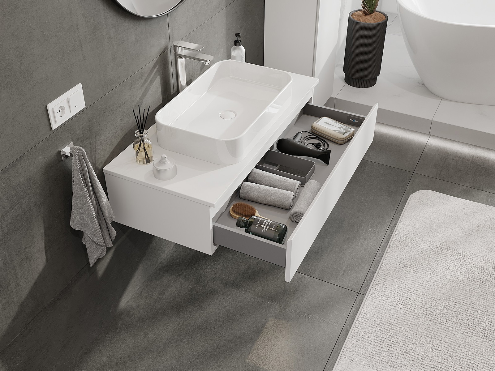 Dėl tvirtų medžiagų, preciziško atlikimo ir šiuolaikinių technologinių sprendimų, produktas užtikrina patogų naudojimą, atsparumą drėgmei ir temperatūros pokyčiams, taip pat elegantišką išvaizdą, kuri tinka įvairiems vonios kambario stiliams.