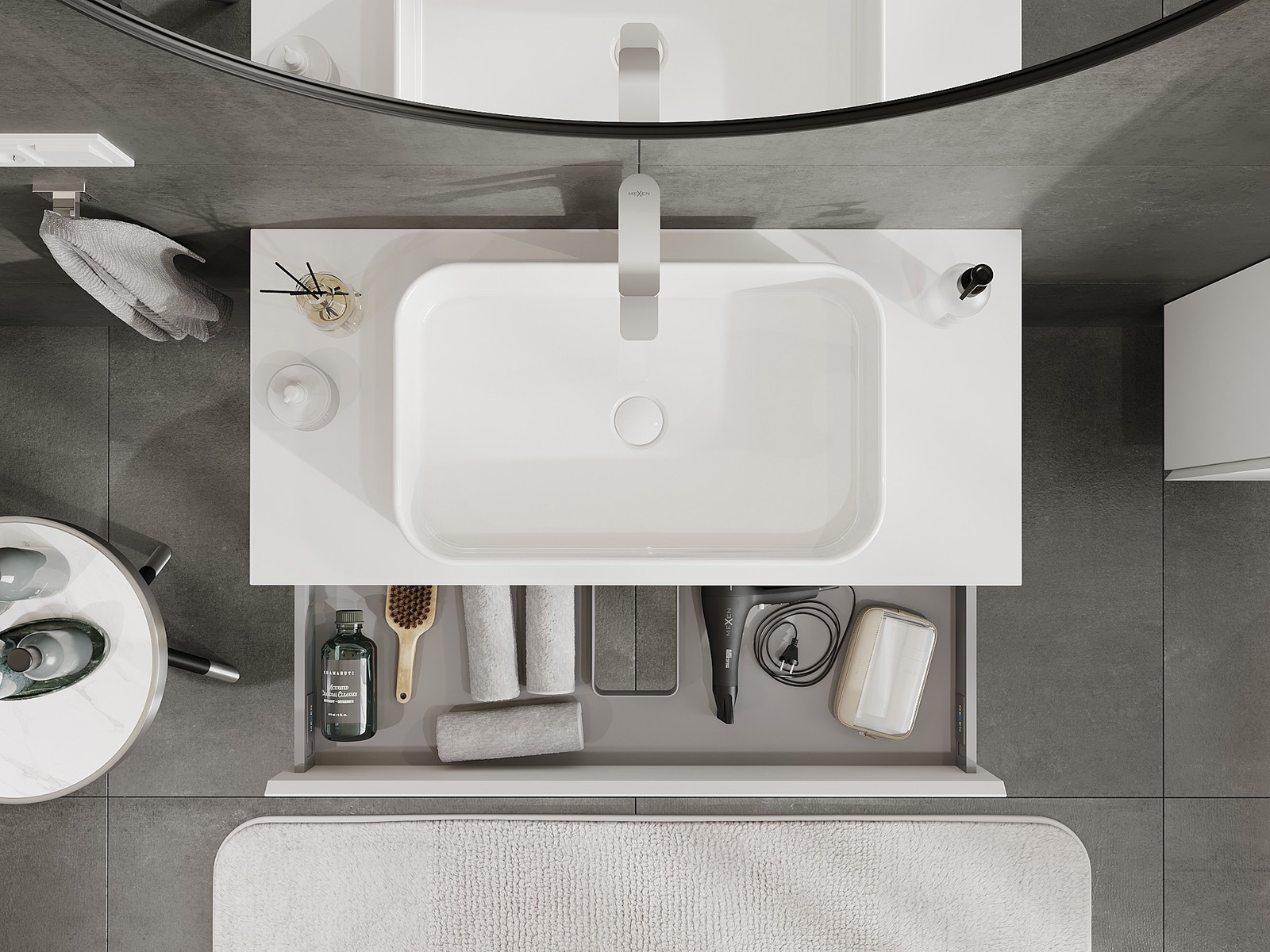 Mexen Orio vonios spintelė po praustuvu 100 cm su stalviršiu, 1 stalčius, balta matinė - 91A10-10023-1-BFC01