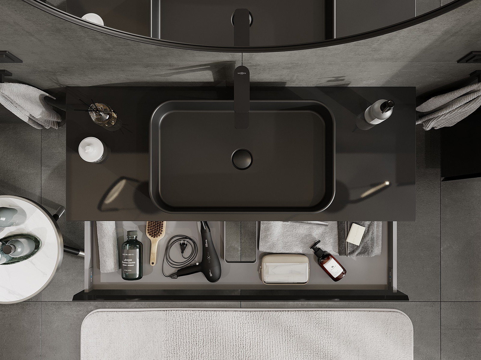 Mūsų moduliniai vonios baldai gali būti derinami tarpusavyje įvairiomis spalvų konfigūracijomis, leidžiant visiškai pritaikyti pagal asmeninius poreikius. Galima pasirinkti tiek atskirų elementų išvaizdą, tiek funkcijas, kas leidžia baldus pritaikyti pagal savo stiliaus ir naudojimo preferencijas.