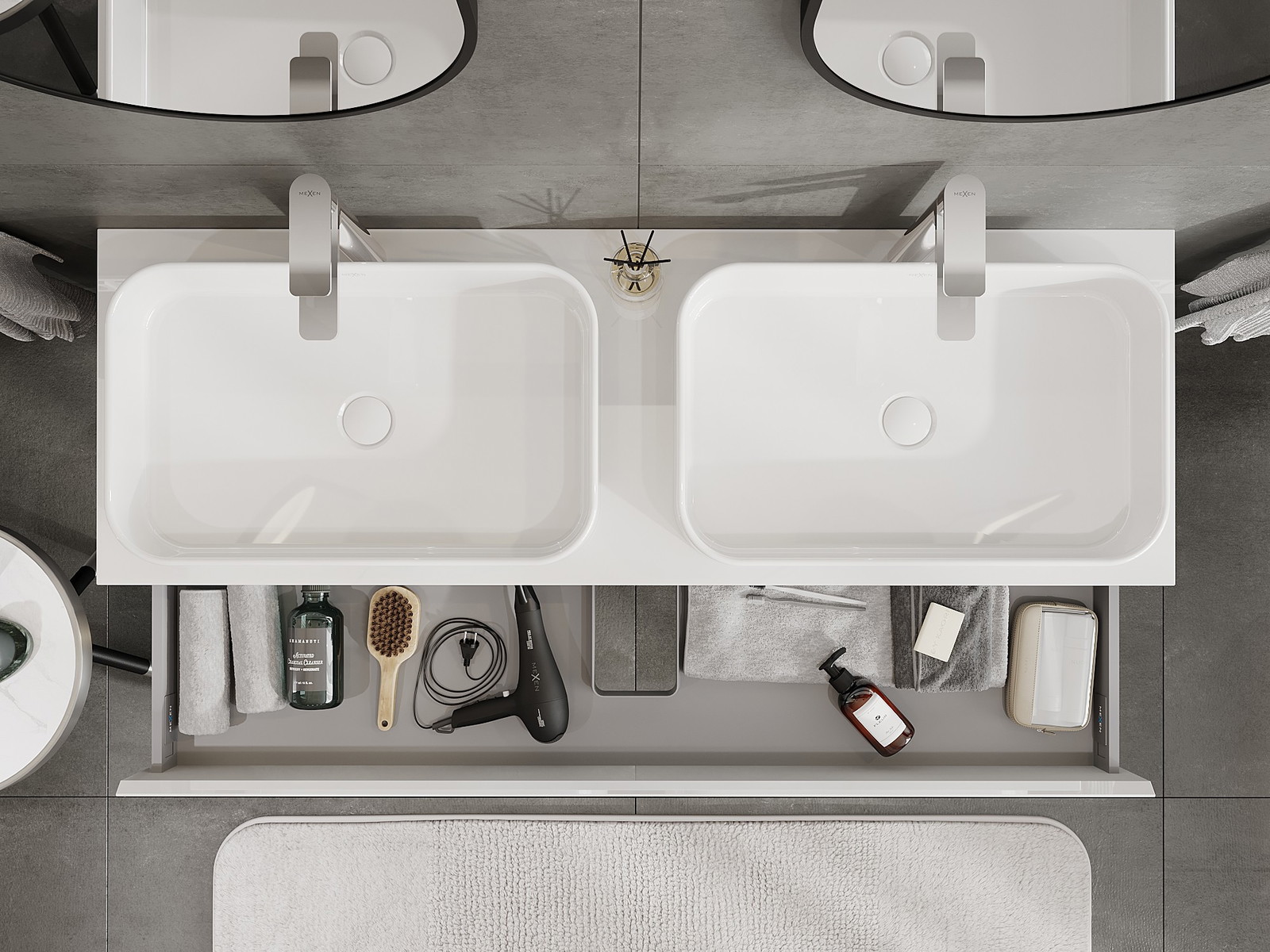 Mūsų moduliniai vonios baldai gali būti derinami tarpusavyje įvairiomis spalvų konfigūracijomis, leidžiant visiškai pritaikyti pagal asmeninius poreikius. Galima pasirinkti tiek atskirų elementų išvaizdą, tiek funkcijas, kas leidžia baldus pritaikyti pagal savo stiliaus ir naudojimo preferencijas.