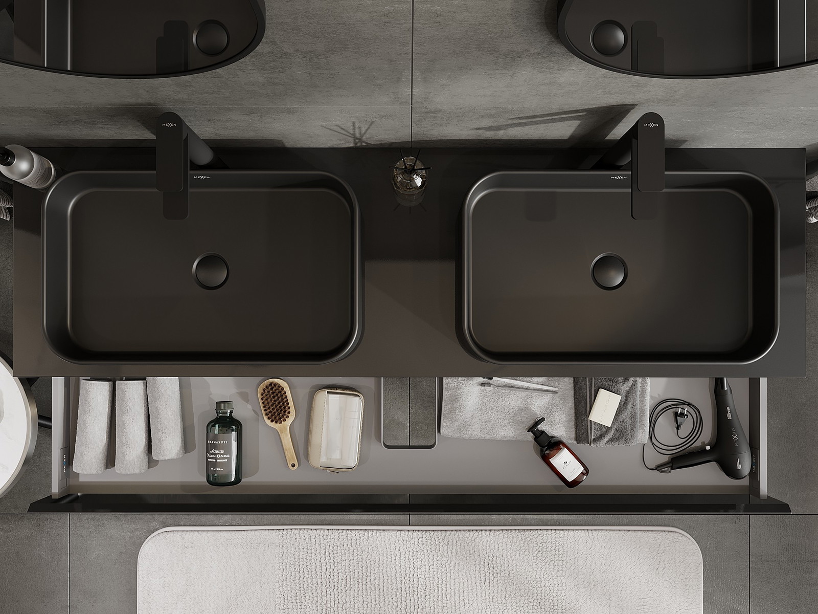 Mūsų moduliniai vonios baldai gali būti derinami tarpusavyje įvairiomis spalvų konfigūracijomis, leidžiant visiškai pritaikyti pagal asmeninius poreikius. Galima pasirinkti tiek atskirų elementų išvaizdą, tiek funkcijas, kas leidžia baldus pritaikyti pagal savo stiliaus ir naudojimo preferencijas.