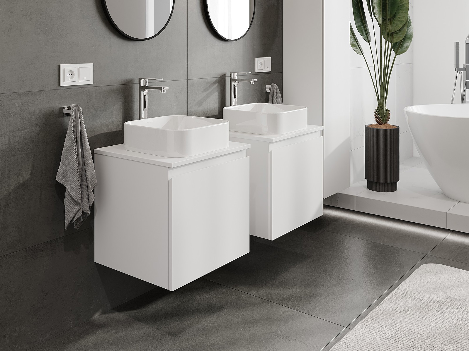 Mūsų moduliniai vonios baldai gali būti derinami tarpusavyje įvairiomis spalvų konfigūracijomis, leidžiant visiškai pritaikyti pagal asmeninius poreikius. Galima pasirinkti tiek atskirų elementų išvaizdą, tiek funkcijas, kas leidžia baldus pritaikyti pagal savo stiliaus ir naudojimo preferencijas.