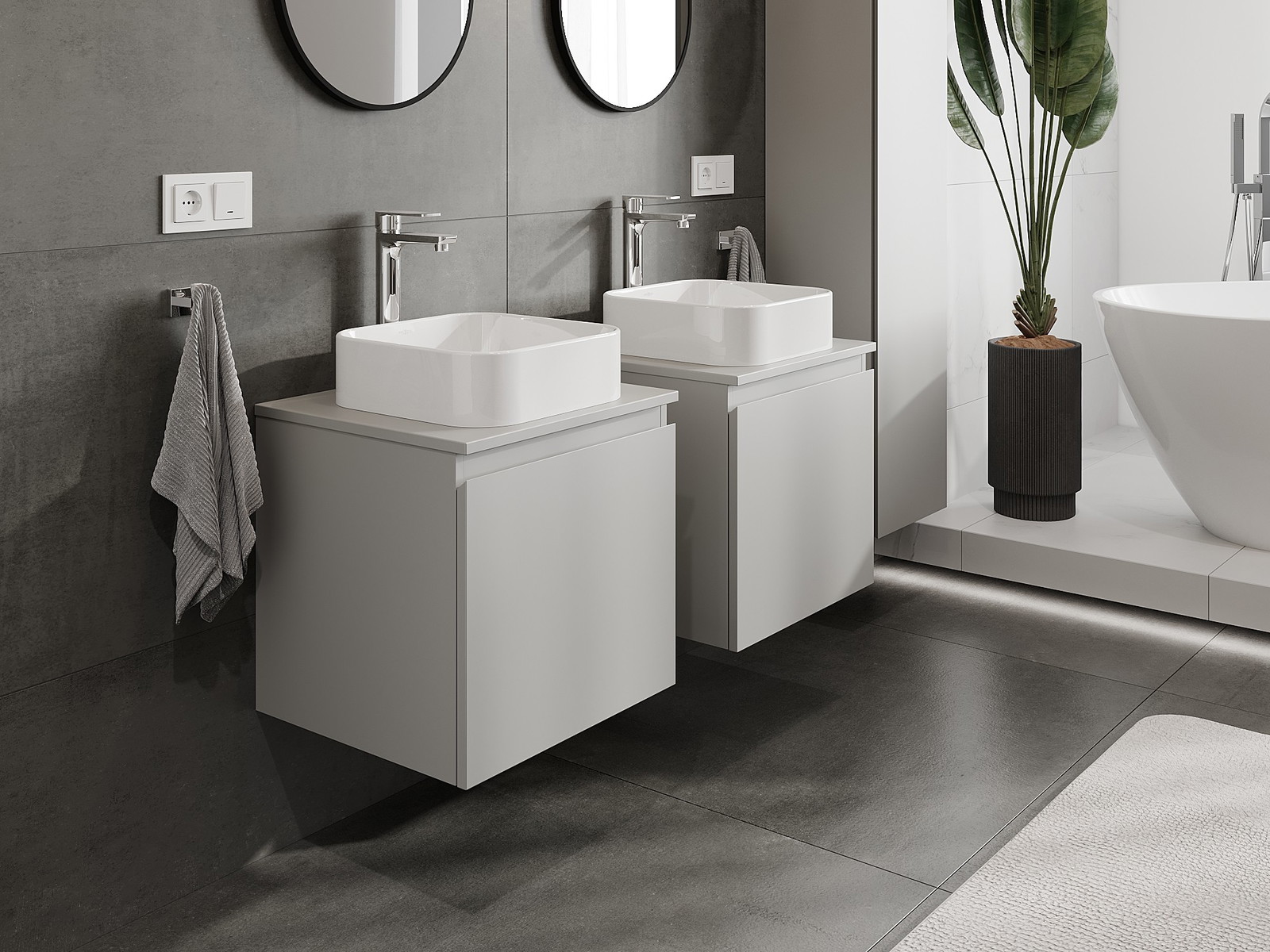 Mūsų moduliniai vonios baldai gali būti derinami tarpusavyje įvairiomis spalvų konfigūracijomis, leidžiant visiškai pritaikyti pagal asmeninius poreikius. Galima pasirinkti tiek atskirų elementų išvaizdą, tiek funkcijas, kas leidžia baldus pritaikyti pagal savo stiliaus ir naudojimo preferencijas.