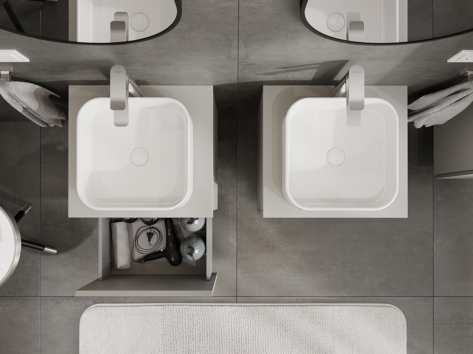 Mexen Orio vonios kambario spintelė po kriaukle 50 cm su stalviršiu, 1 stalčius, pilka matinė - 91A10-05047-1-BFC62