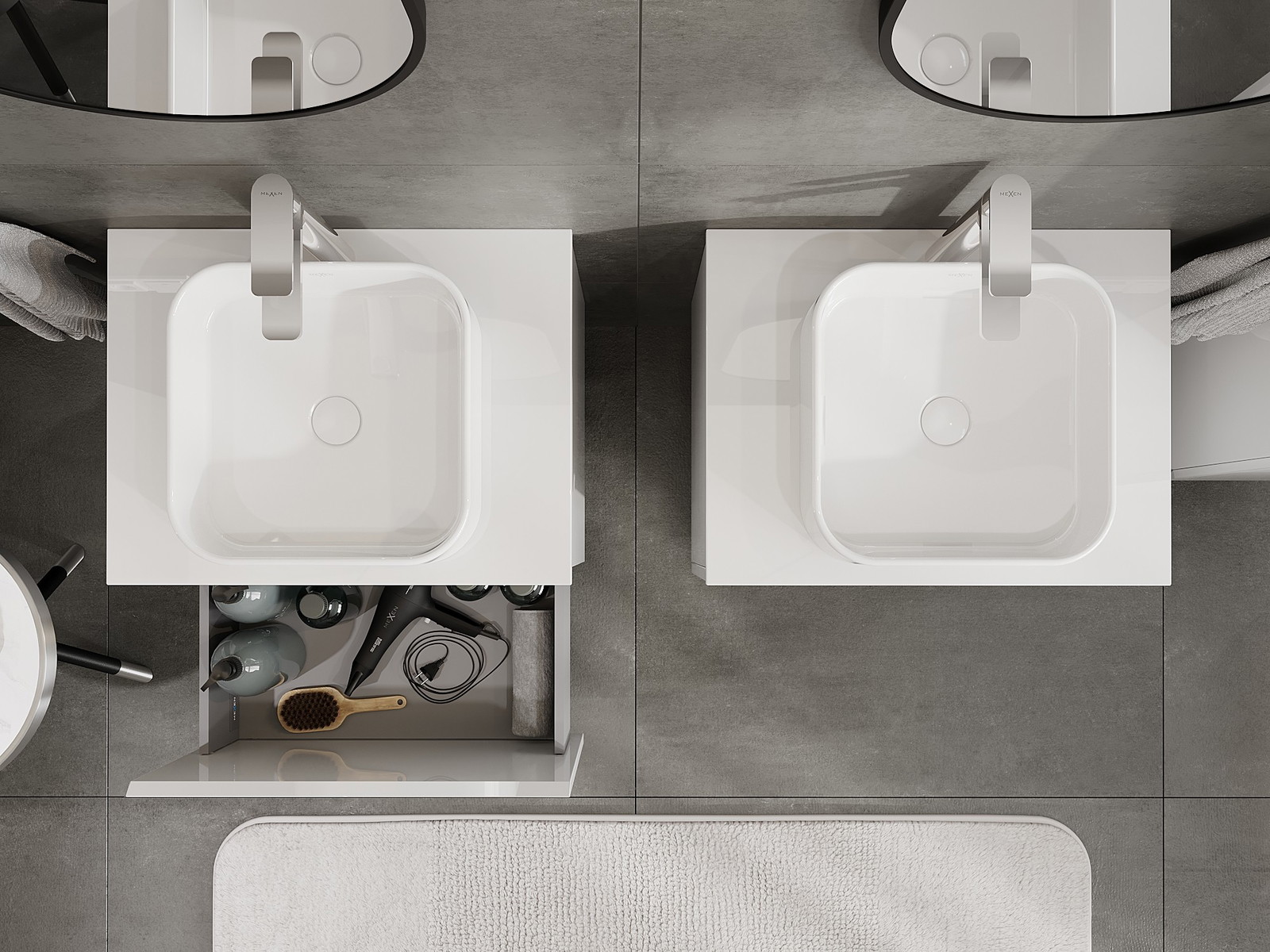 Mūsų moduliniai vonios baldai gali būti derinami tarpusavyje įvairiomis spalvų konfigūracijomis, leidžiant visiškai pritaikyti pagal asmeninius poreikius. Galima pasirinkti tiek atskirų elementų išvaizdą, tiek funkcijas, kas leidžia baldus pritaikyti pagal savo stiliaus ir naudojimo preferencijas.