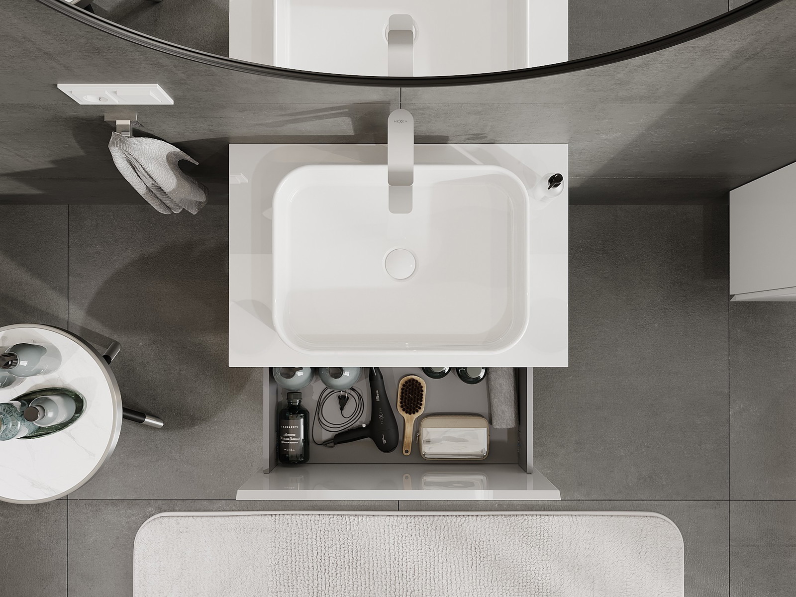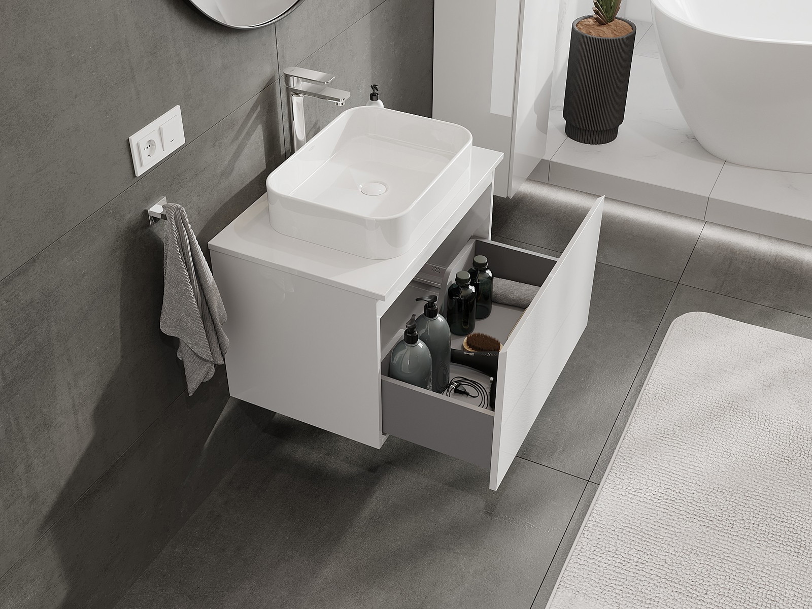 Mūsų moduliniai vonios baldai gali būti derinami tarpusavyje įvairiomis spalvų konfigūracijomis, leidžiant visiškai pritaikyti pagal asmeninius poreikius. Galima pasirinkti tiek atskirų elementų išvaizdą, tiek funkcijas, kas leidžia baldus pritaikyti pagal savo stiliaus ir naudojimo preferencijas.