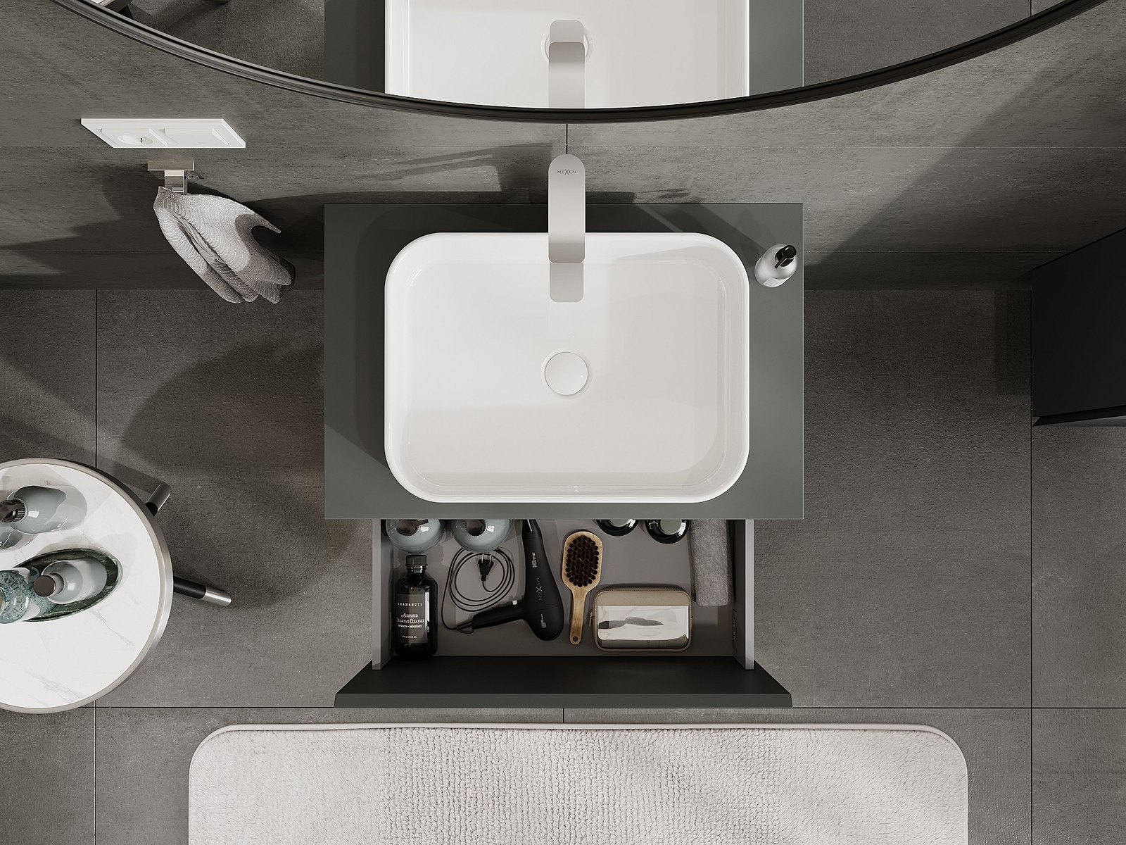 Mūsų moduliniai vonios baldai gali būti derinami tarpusavyje įvairiomis spalvų konfigūracijomis, leidžiant visiškai pritaikyti pagal asmeninius poreikius. Galima pasirinkti tiek atskirų elementų išvaizdą, tiek funkcijas, kas leidžia baldus pritaikyti pagal savo stiliaus ir naudojimo preferencijas.