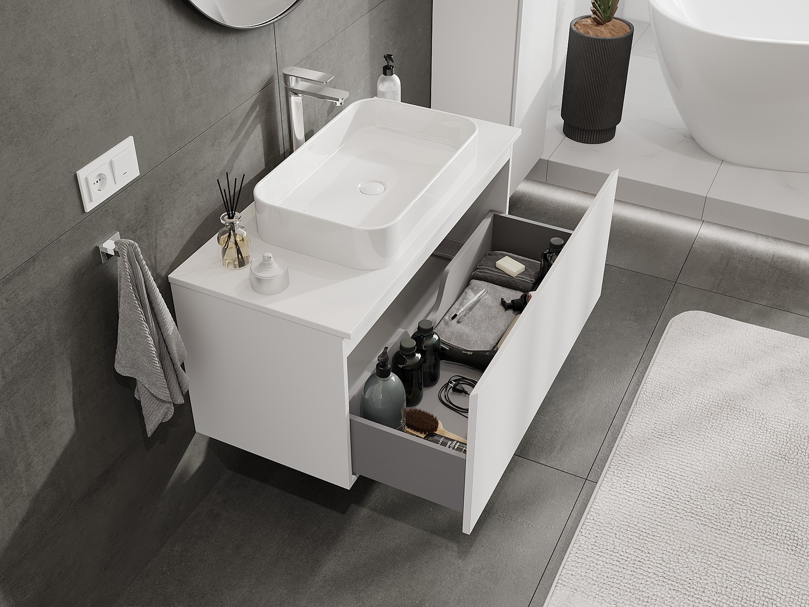 Mūsų moduliniai vonios baldai gali būti derinami tarpusavyje įvairiomis spalvų konfigūracijomis, leidžiant visiškai pritaikyti pagal asmeninius poreikius. Galima pasirinkti tiek atskirų elementų išvaizdą, tiek funkcijas, kas leidžia baldus pritaikyti pagal savo stiliaus ir naudojimo preferencijas.