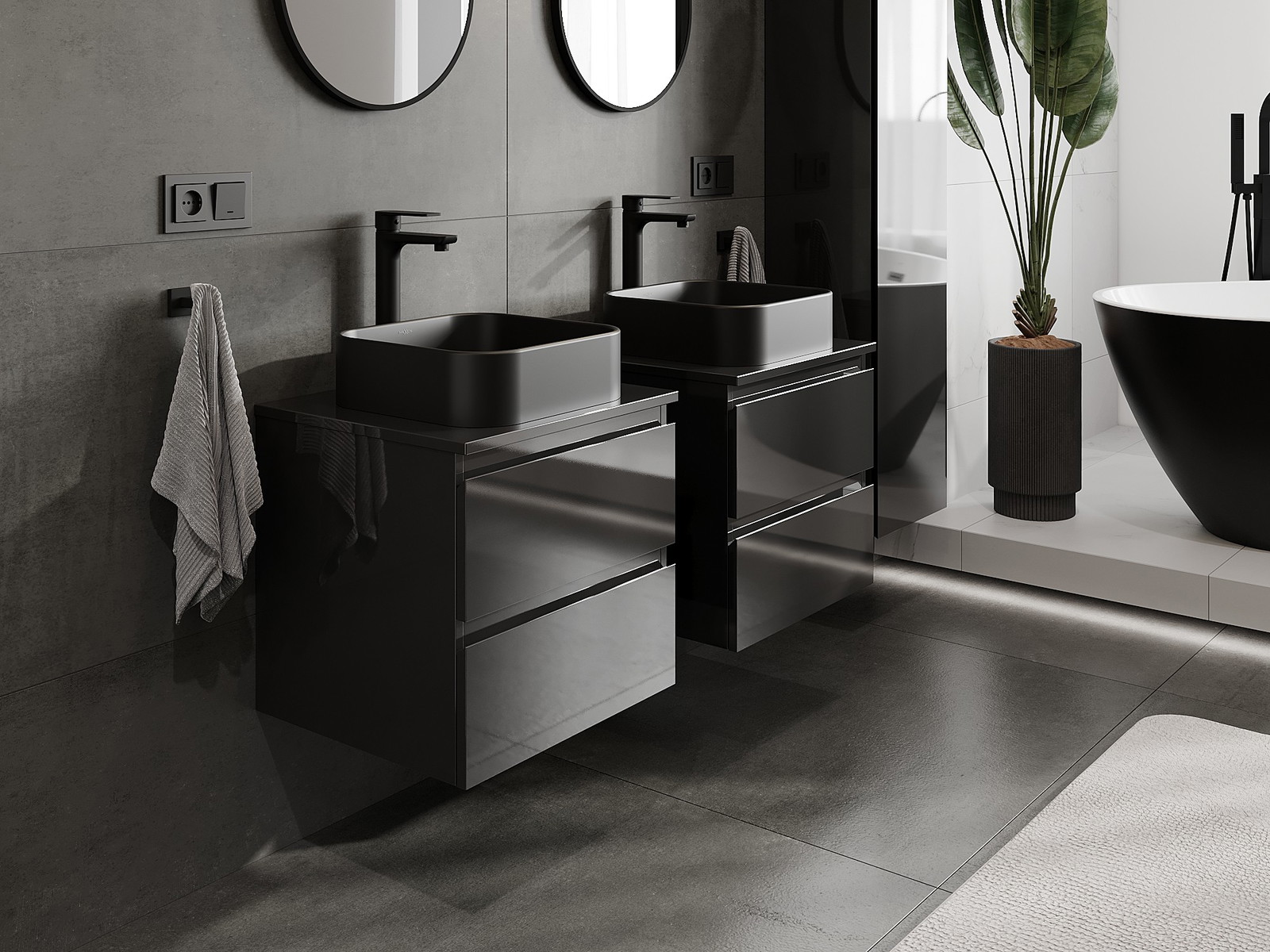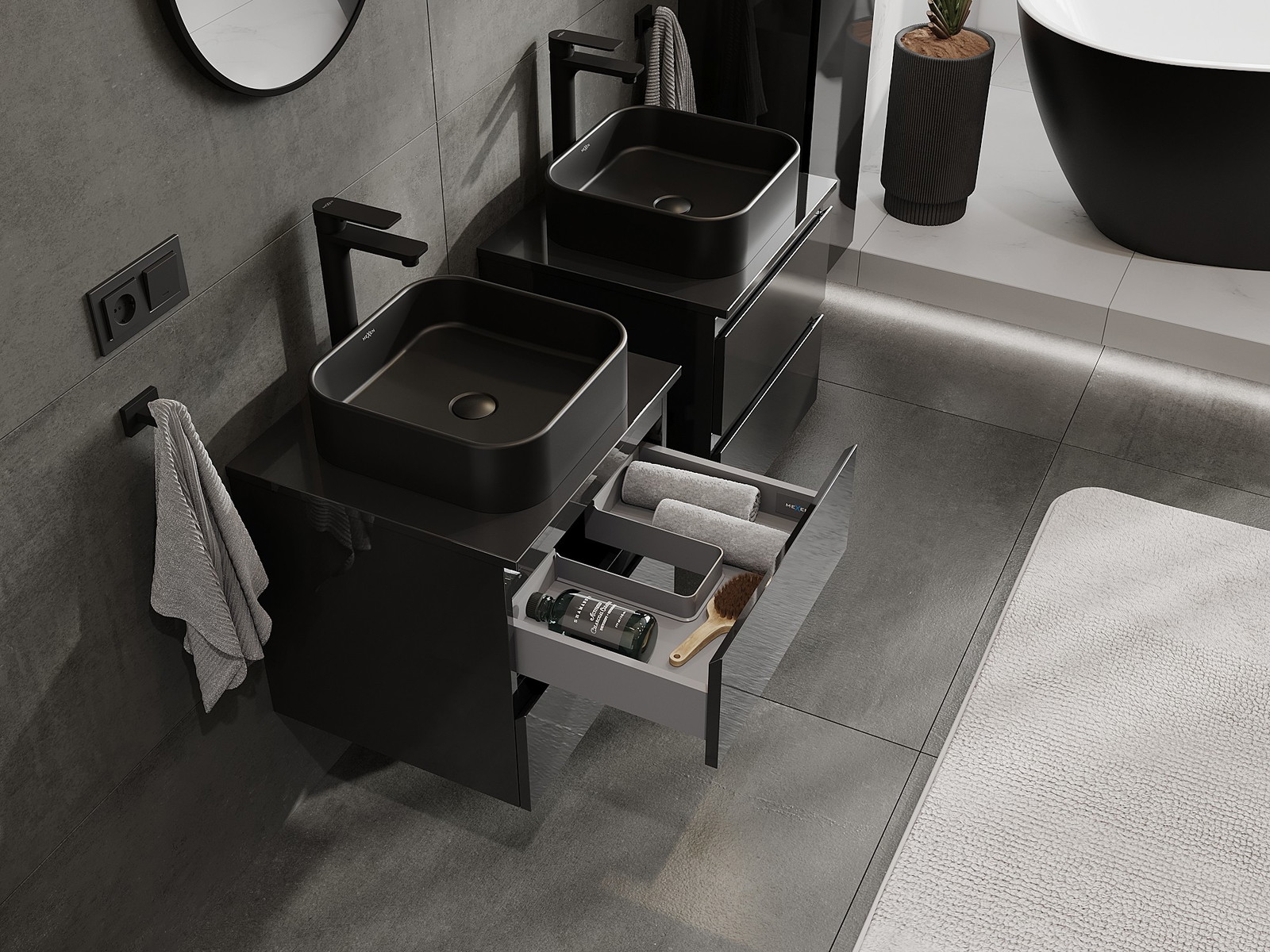 Mūsų moduliniai vonios baldai gali būti derinami tarpusavyje įvairiomis spalvų konfigūracijomis, leidžiant visiškai pritaikyti pagal asmeninius poreikius. Galima pasirinkti tiek atskirų elementų išvaizdą, tiek funkcijas, kas leidžia baldus pritaikyti pagal savo stiliaus ir naudojimo preferencijas.