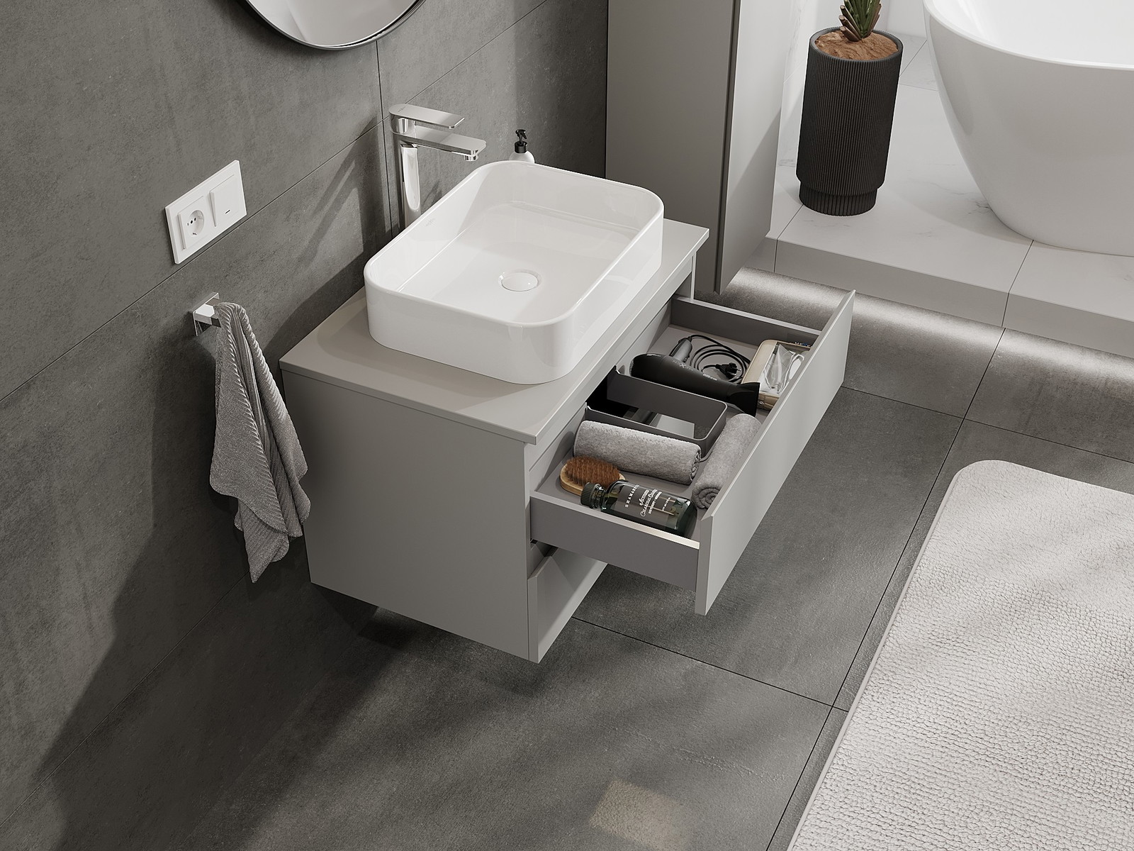 Mūsų moduliniai vonios baldai gali būti derinami tarpusavyje įvairiomis spalvų konfigūracijomis, leidžiant visiškai pritaikyti pagal asmeninius poreikius. Galima pasirinkti tiek atskirų elementų išvaizdą, tiek funkcijas, kas leidžia baldus pritaikyti pagal savo stiliaus ir naudojimo preferencijas.