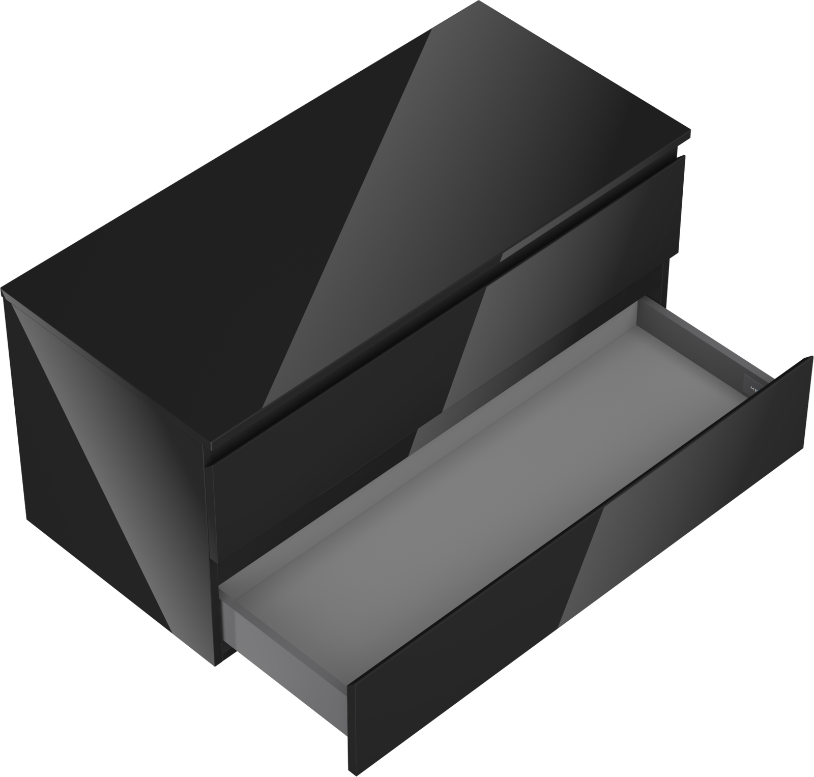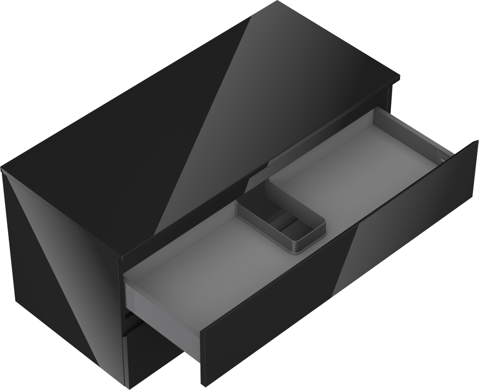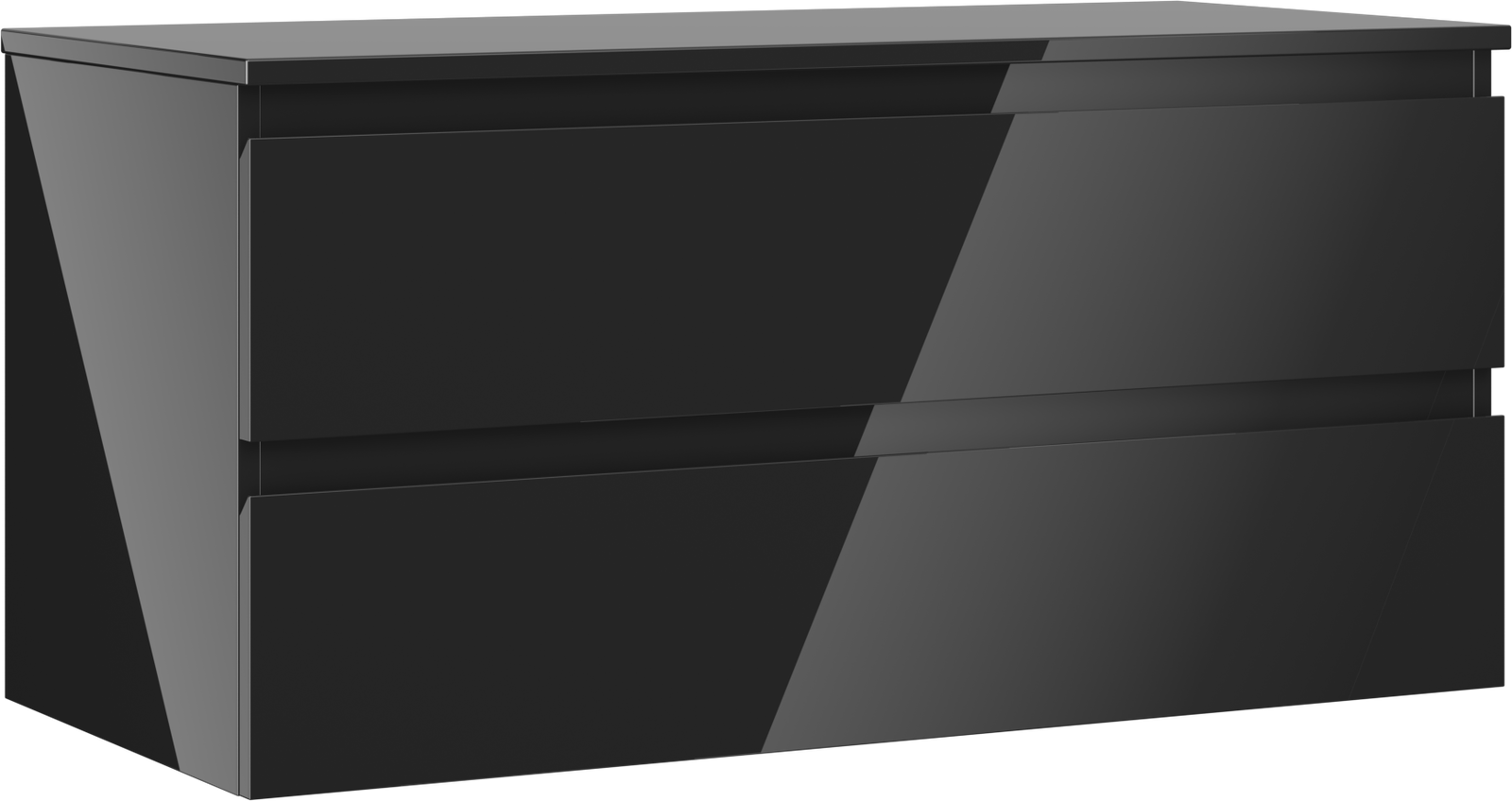 Mexen Orio vonios kambario spintelė po praustuvu 100 cm su stalviršiu, 2 stalčiai, juodas blizgesys - 91A10-10047-2-BFFC70