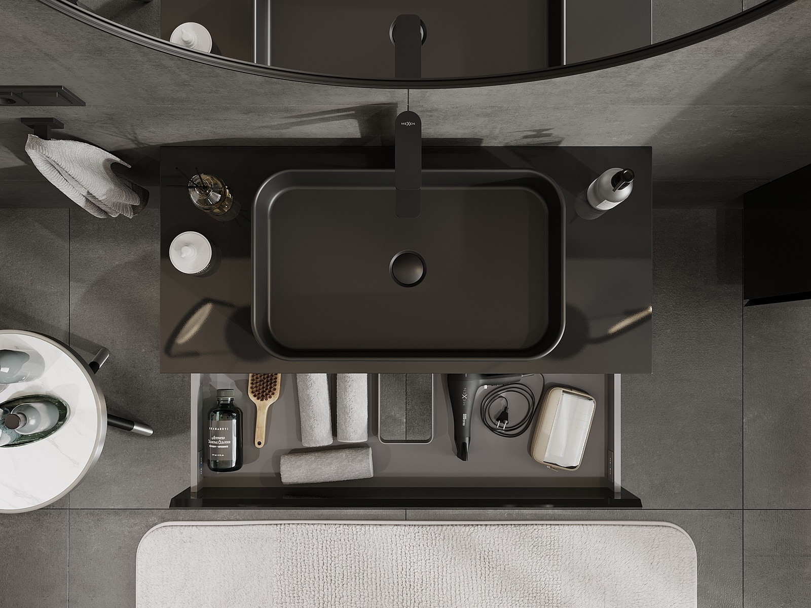 Mūsų moduliniai vonios baldai gali būti derinami tarpusavyje įvairiomis spalvų konfigūracijomis, leidžiant visiškai pritaikyti pagal asmeninius poreikius. Galima pasirinkti tiek atskirų elementų išvaizdą, tiek funkcijas, kas leidžia baldus pritaikyti pagal savo stiliaus ir naudojimo preferencijas.
