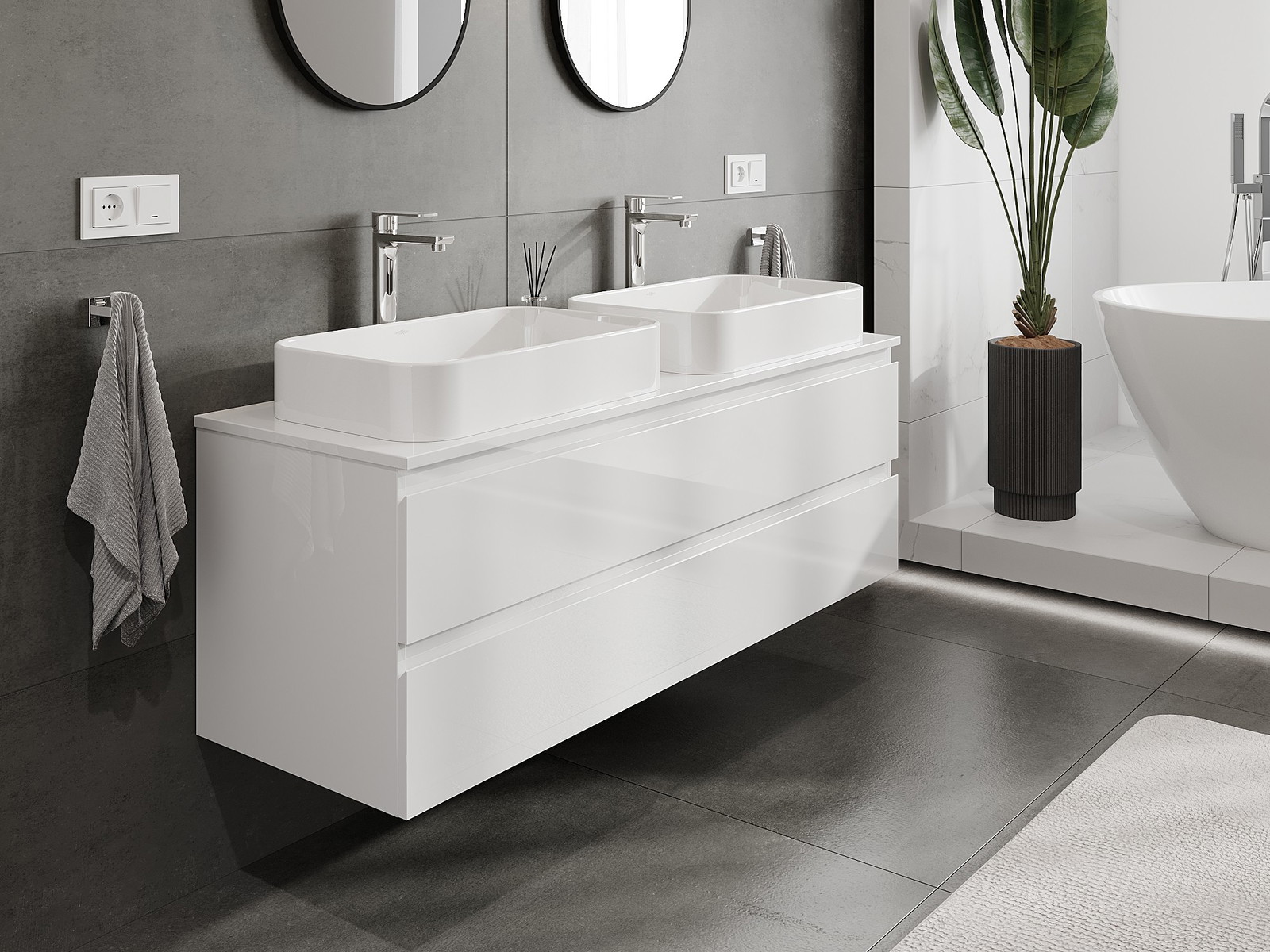 Mūsų moduliniai vonios baldai gali būti derinami tarpusavyje įvairiomis spalvų konfigūracijomis, leidžiant visiškai pritaikyti pagal asmeninius poreikius. Galima pasirinkti tiek atskirų elementų išvaizdą, tiek funkcijas, kas leidžia baldus pritaikyti pagal savo stiliaus ir naudojimo preferencijas.