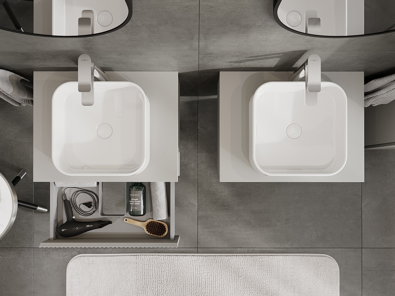 Mexen Rivel vonios spintelė po praustuvu 60 cm su stalviršiu, 1 stalčiukas, rifliuota, matinė pilka - 91A20-06023-1-BFC62
