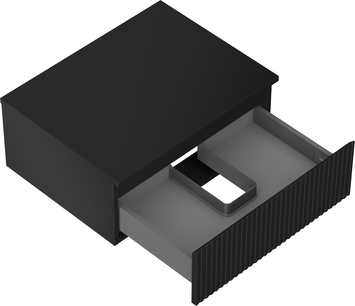 Mexen Rivel vonios spintelė po kriaukle 60 cm su stalviršiu, 1 stalčius, rifliuota, juoda matinė - 91A20-06023-1-BFC71