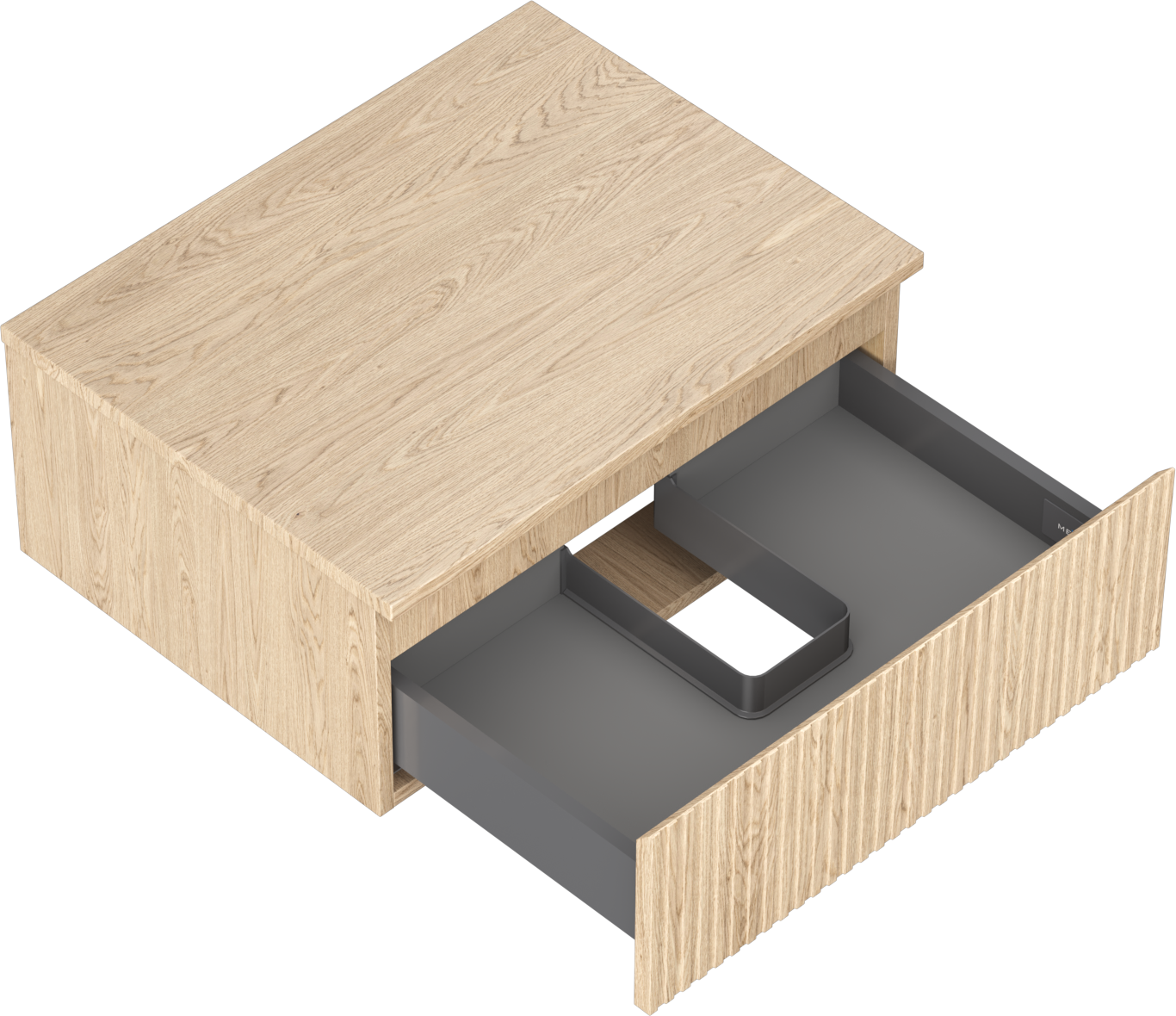 Mexen Rivel vonios kambario spintelė po praustuvu 60 cm, su stalviršiu, 1 stalčius, rifliuotas, ąžuolas - 91A20-06023-1-BFC81